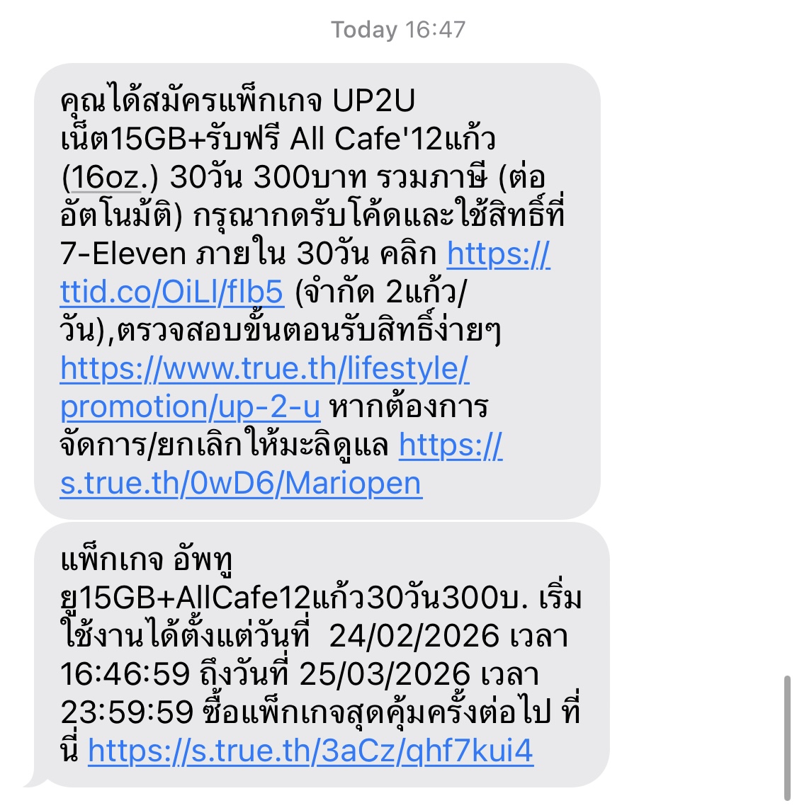 แพ็คของทรู UP2U เน็ต15GB+รับฟรี All Cafe'12แก้ว (16oz.) 30วัน ถ้าไม่กดรับสิทธิ์เสียเงินไหมคะ ยกเลิกยังไงได้บ้าง