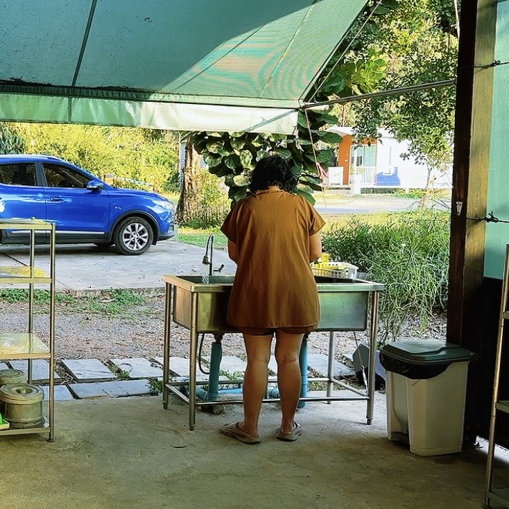 มีจุดล้างจานเป็นสัดส่วน มีน้ำแข็งฟรี และมีพัดลมให้ยืมด้วยนะ