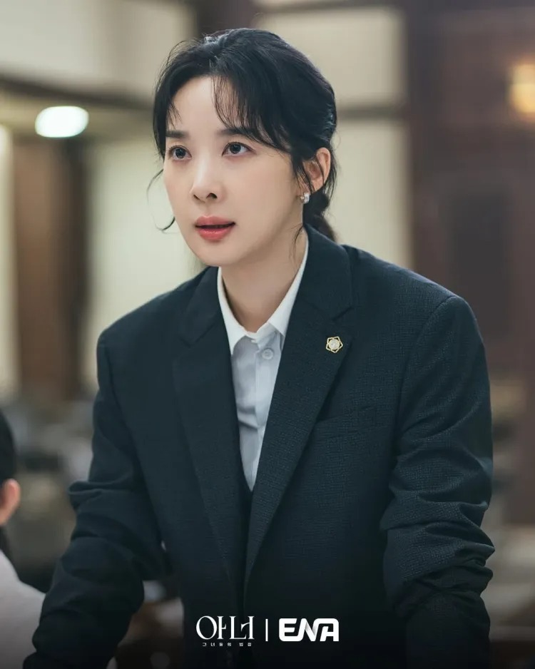 ทนายสายลงมือทำจริง ชอบวิ่งไปที่สถานที่ ที่มีคดีมากกว่านั่งโต๊ะ ตัวละครนี้เต็มไปด้วย passion และความยุติธรรมแบบดิบ ๆ แต่ชีวิตส่วนตัวกลับถูกสามี (นักสืบ) ขุดคุ้ยอดีต ทำให้เธอต้องเผชิญความกลัวที่แท้จริง บทนี้ให้อีชองอาได้โชว์ทั้งความดุเดือดและความเปราะบาง