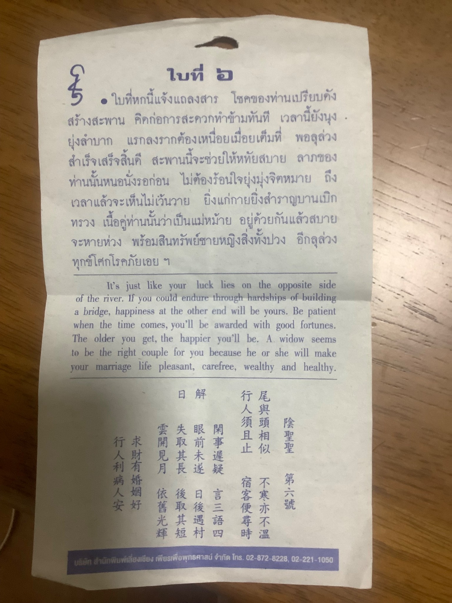 ช่วยแปลเซียมซีภาษาจีนหน่อยค่ะ ของวัดไคฟง