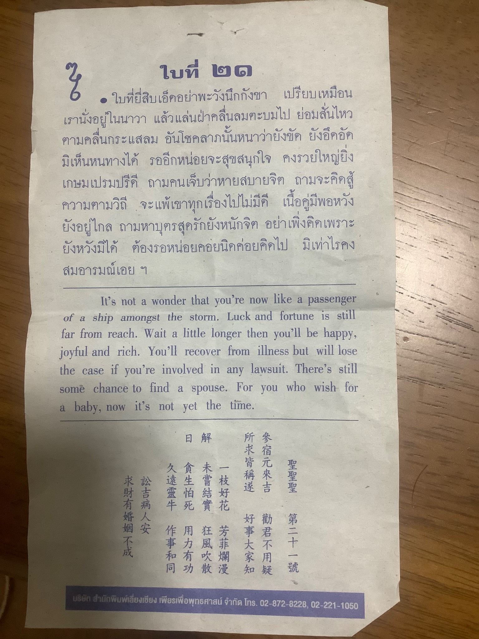 เซียมซีนี้หมายความว่ายังไงคะ อ่านคำแปลแล้วไม่เข้าใจ มีภาษาจีนด้วยค่ะ