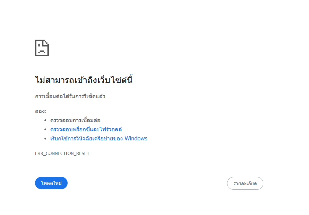 รบกวนแนะนำวิธีแก้ Chrome ขึ้นว่า "ไม่สามารถเข้าถึงเว็บไซต์นี้ ปฏิเสธการเชื่อมต่อ"