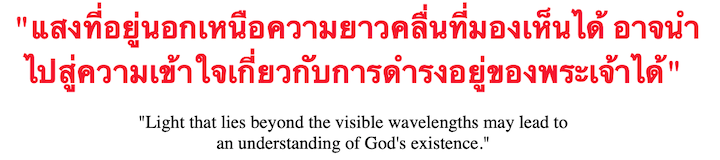 A hypothesis: "แสงที่อยู่นอกเหนือความยาวคลื่นที่มองเห็นได้ อาจนำไปสู่ความเข้าใจเกี่ยวกับการดำรงอยู่ของพระเจ้าได้"