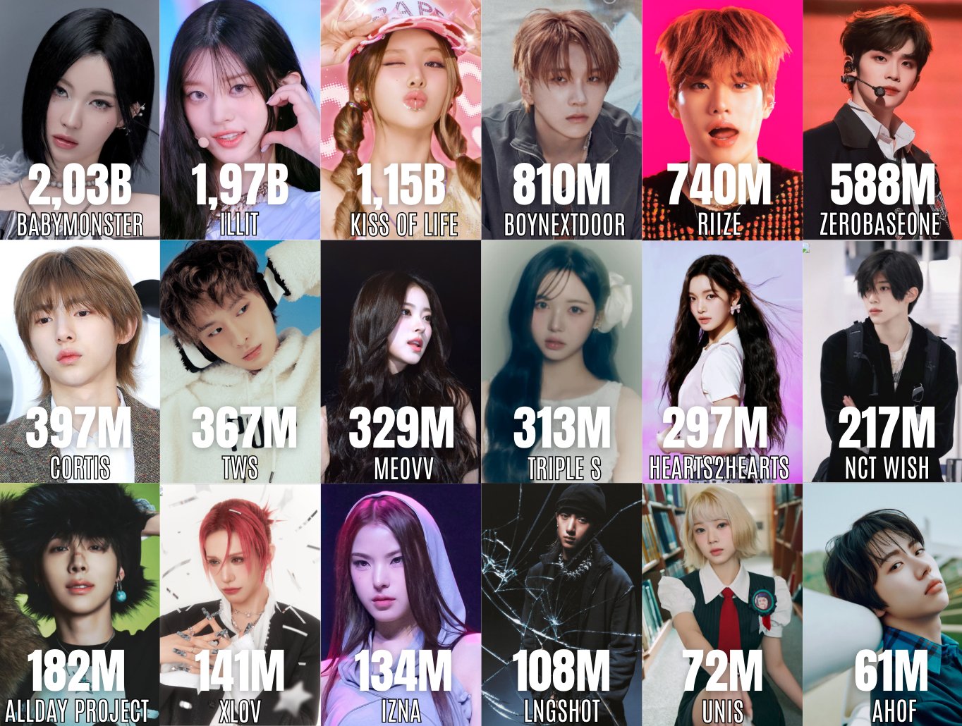 BABYMONSTER ยังคงเป็นเคป๊อปเจน 5 รวมชายหญิงที่มียอดสตรีมสูงสุดบน Spotify ตอนนี้อยู่ที่ 2.03 พันล้านสตรีม แต่ก็ต้องยอมรับว่าใกล้จะ