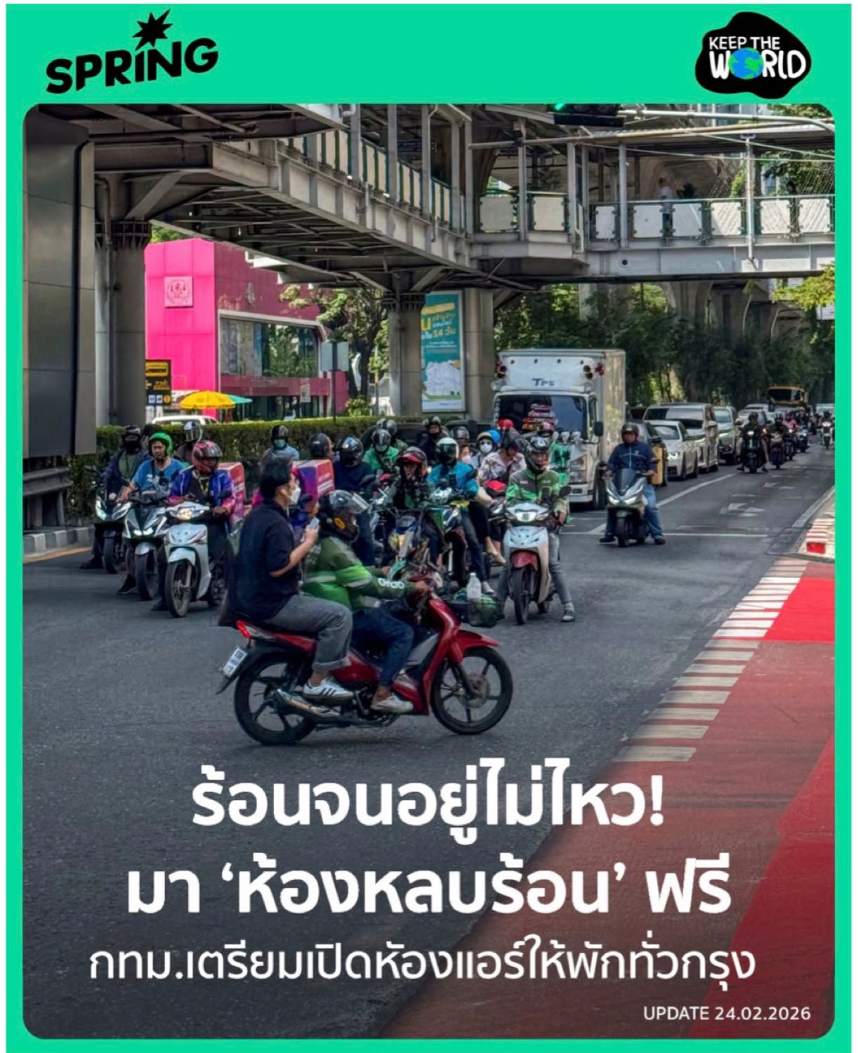 • ห้องหลบร้อน (Cooling Center): กทม. เตรียมเปิดห้องแอร์ให้ประชาชนเข้ามาพักคลายร้อนได้ ฟรี