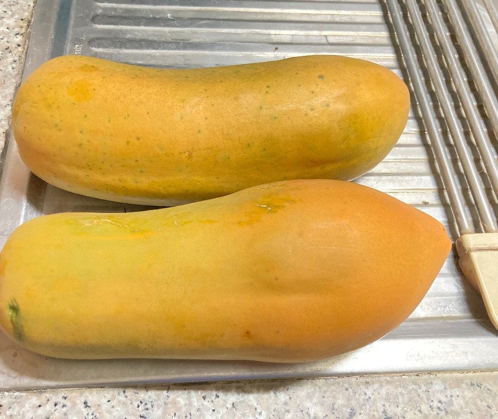 จำน้องมะละกอ 2 ลูกนี้ได้ไหมคะ ที่เกิดเอง ดูแลตัวเอง ตอนนี้น้องสุกแล้วนะ