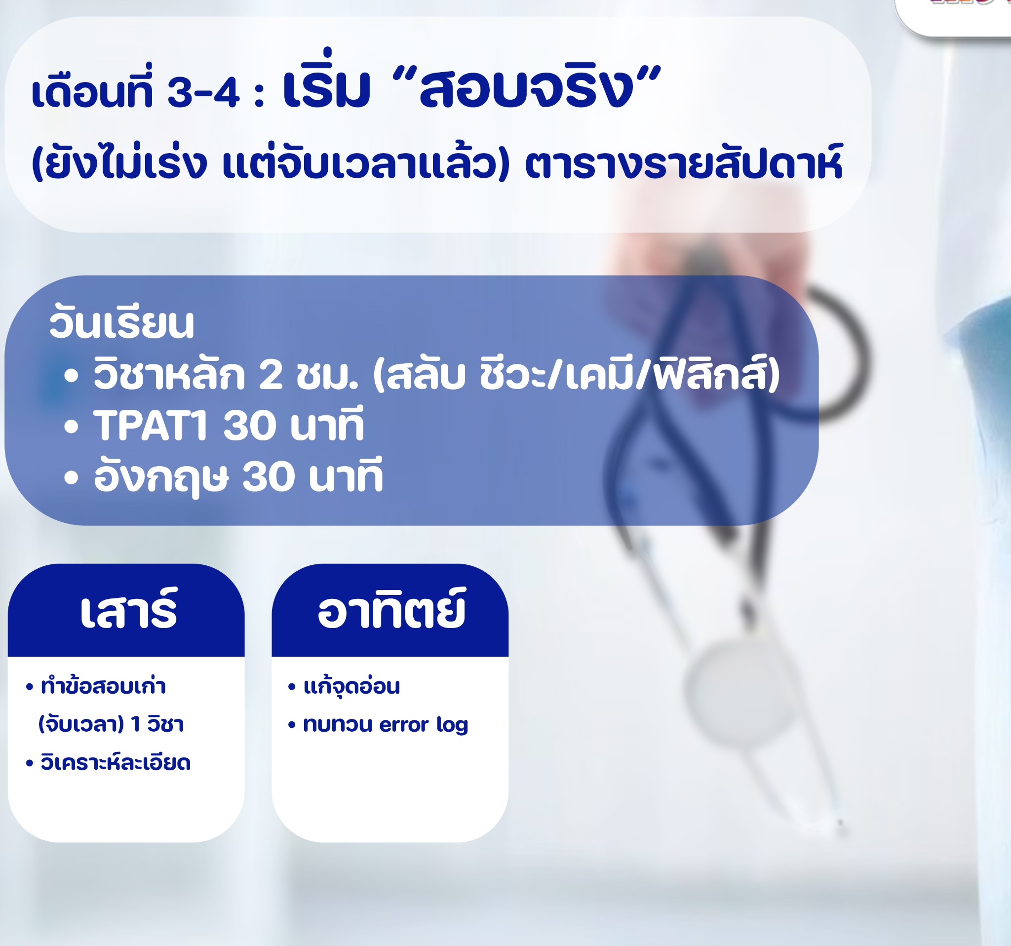 แบ่งเวลาชัดเจน เรียน 2.5-3 ชม. / เสาร์-อาทิตย์ 4-6 ชม. (ไม่โหลดจนเกินไป)