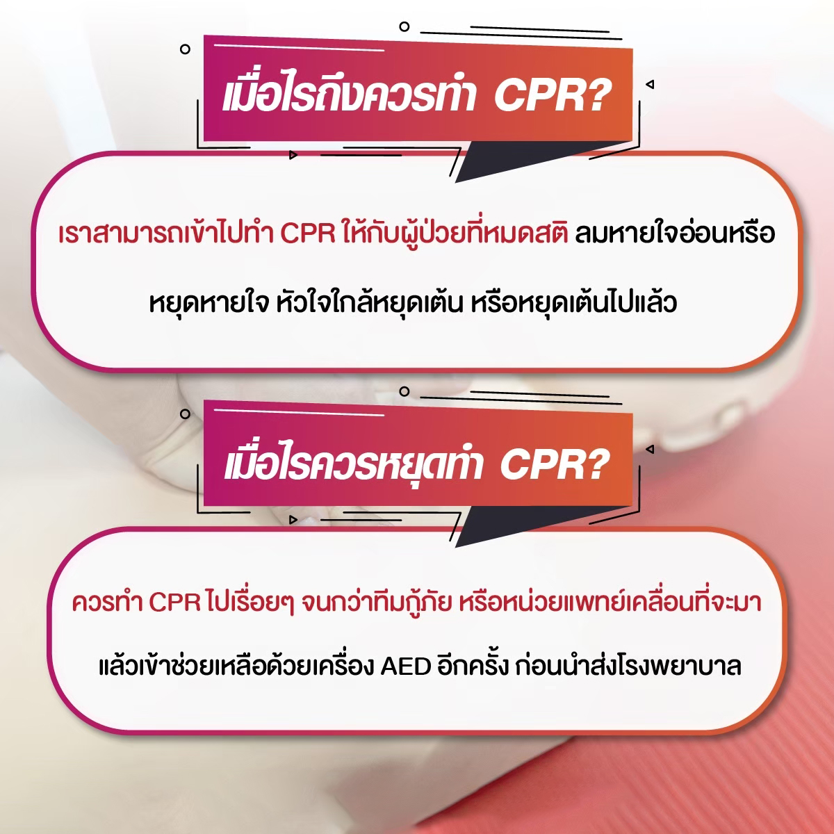 อย่าปล่อยให้ความตกใจทำอะไรไม่ถูก! การทำ CPR (Cardiopulmonary resuscitation) ที่ถูกต้อง สามารถเพิ่มโอกาสรอดชีวิตให้คนที่คุณรักได้ถึง 2 เท่า!