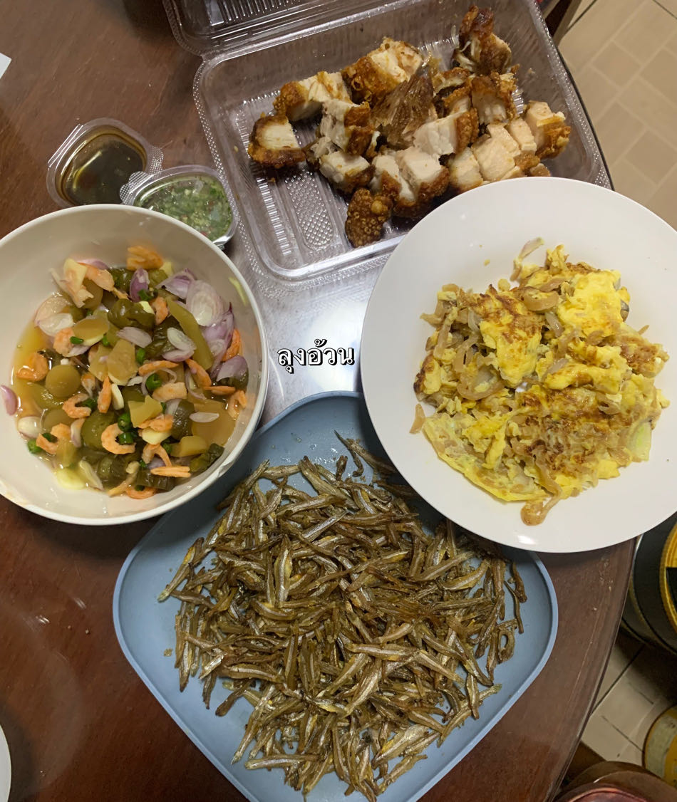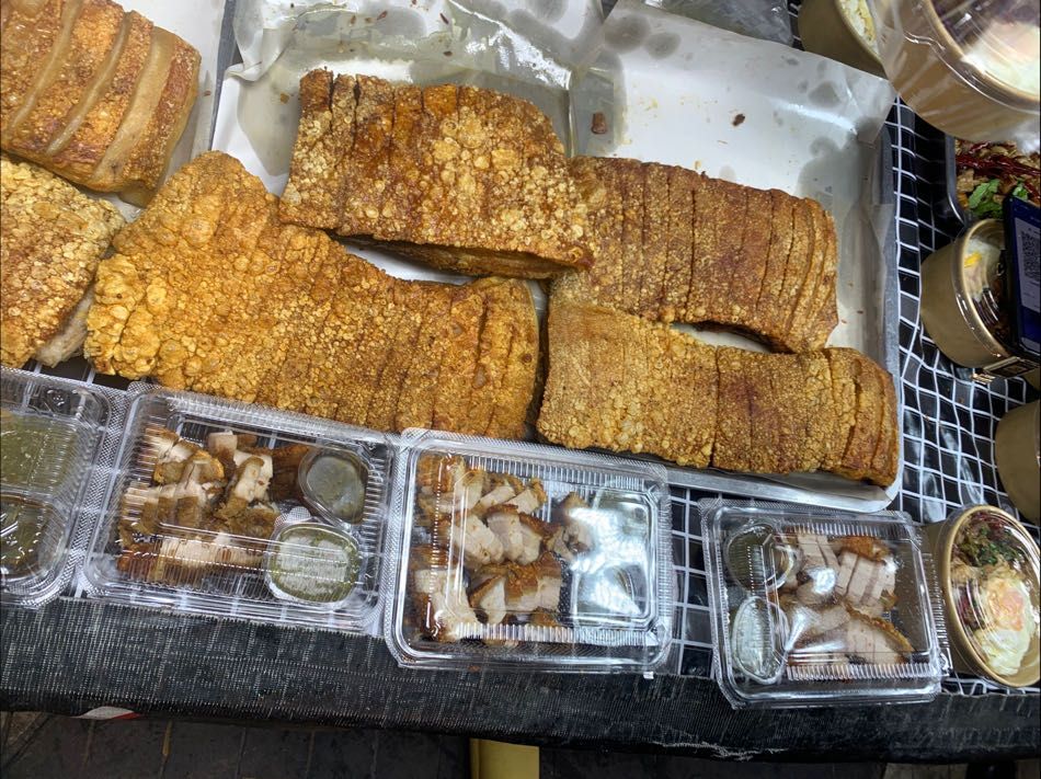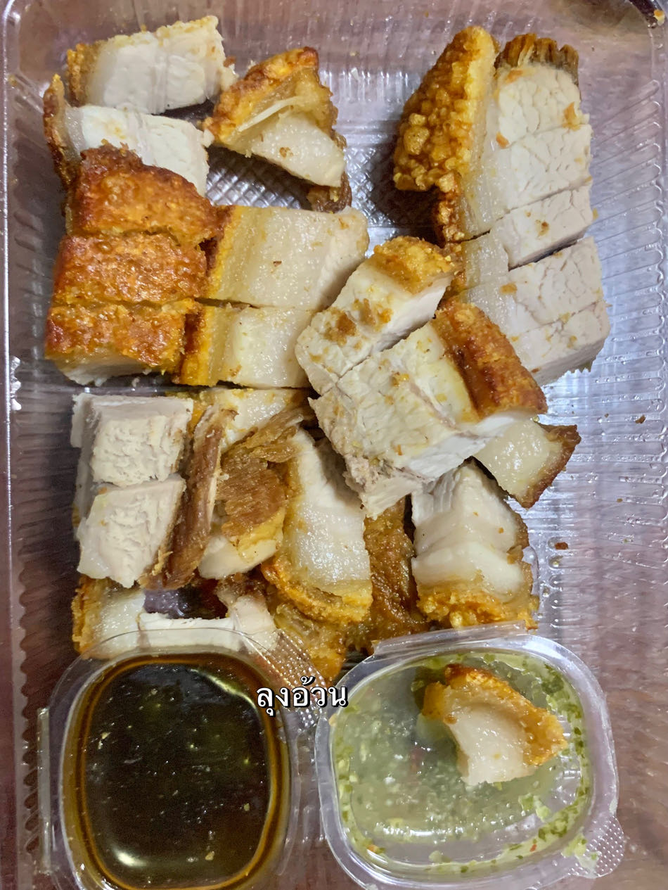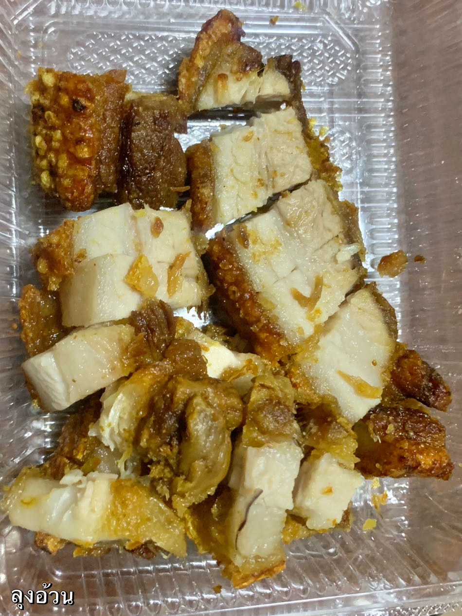 เมนูสารพัดประโยชน์:จะเป็นข้าวหมูกรอบราดน้ำแดง, ผัดกะเพราหมูกรอบ, ผัดคะน้าหมูกรอบ หรือกินคู่กับส้มตำก็เข้ากัน