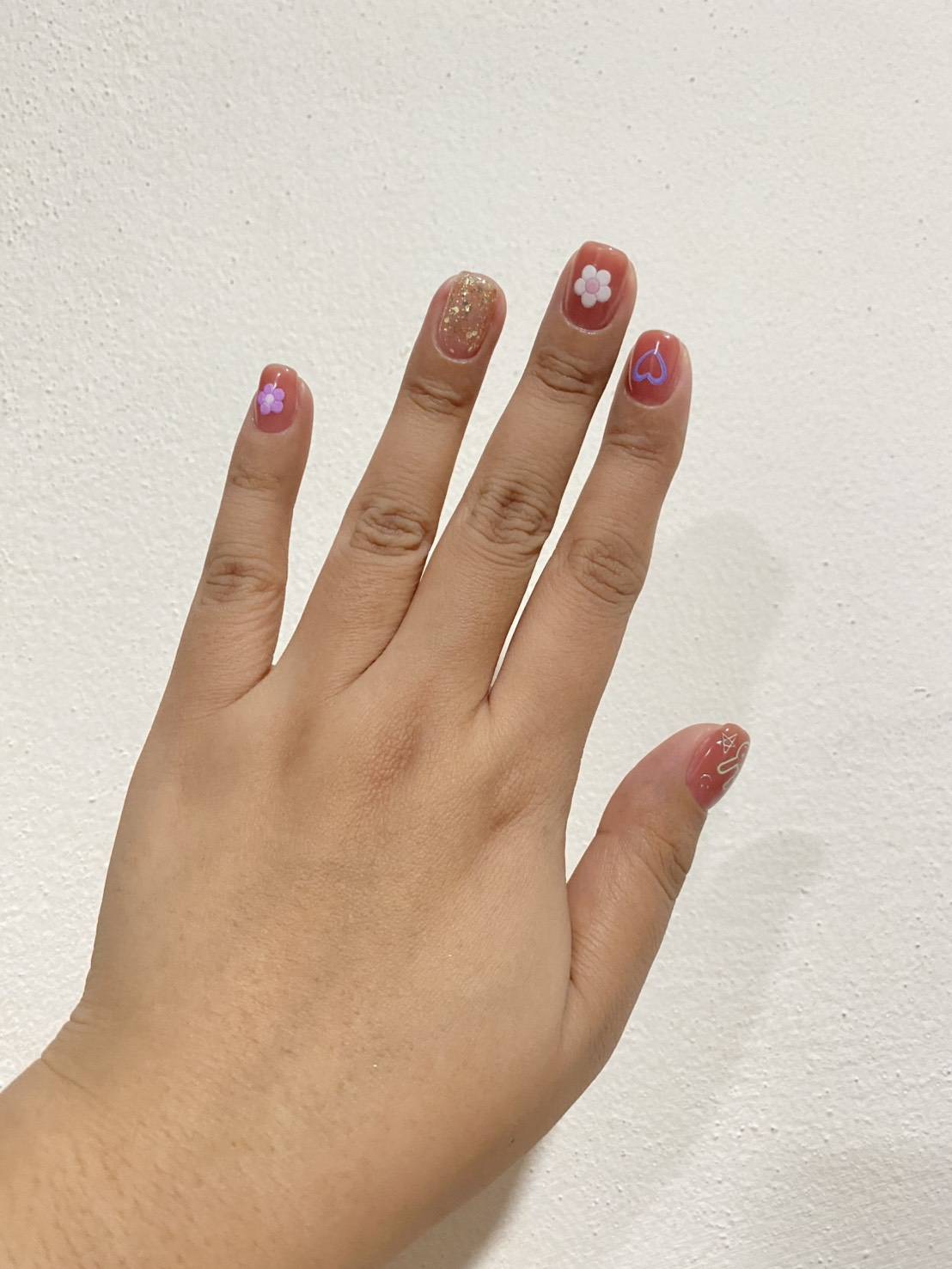 แต่มันสวยนะ ร้านนี้อะไรดีมาก แบบบริการดีใส่ใจพูดเพราะ ทำเล็บแค่ตัดหนังออกไม่ต่อเล็บ แค่ทาเล็บสีพื้นและ ติดสติกเกอร์