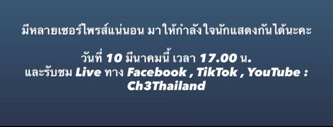 และรับชม Live ทาง Facebook , TikTok , YouTube : Ch3Thailand