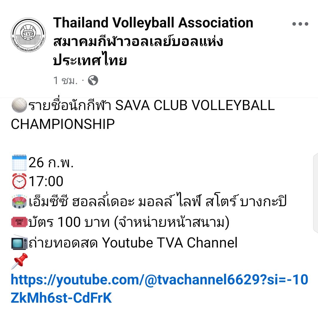 🏐 รายชื่อนักกีฬา SAVA CLUB VOLLEYBALL CHAMPIONSHIP