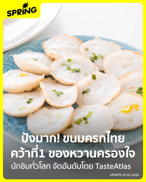 จากแผงขนมริมทางที่คุ้นตา สู่เวทีนักชิมระดับโลก ‘ขนมครก’ ขนมพื้นบ้านไทยถ้วยเล็กๆ กำลังสร้างชื่อเสียงครั้งใหญ่ หลังคว้าอันดับ 1 ‘ขนมหวานไทยยอดเยี่ยม ปี 2026’ จาก TasteAtlas แพลตฟอร์มอาหารระดับโลกที่ได้รับการยอมรับในฐานะ ‘แผนที่อาหารโลก’