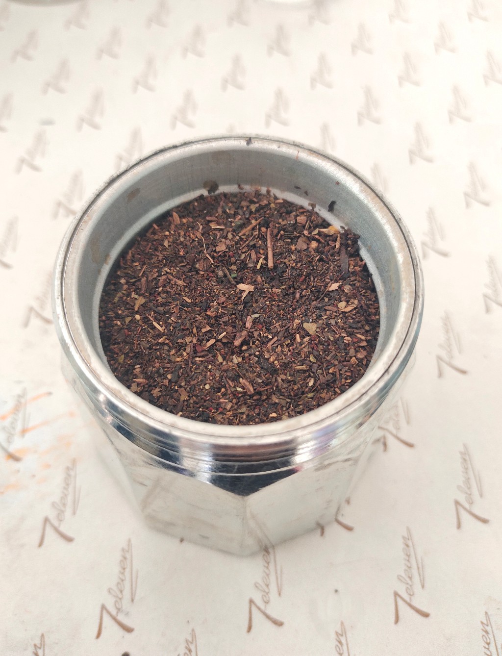 1. ใส่ผงชาไทยตรามือลงในตะกร้ากรองของโมก้าพอท