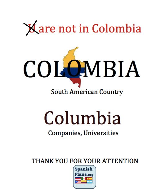 จากภาพข้างบนจะเห็นได้ว่า ประเทศนี้ควรอ่านและเขียนเป็น Colombia โคลอมเบีย ครับ ไม่ใช่ Columbia โคลัมเบีย