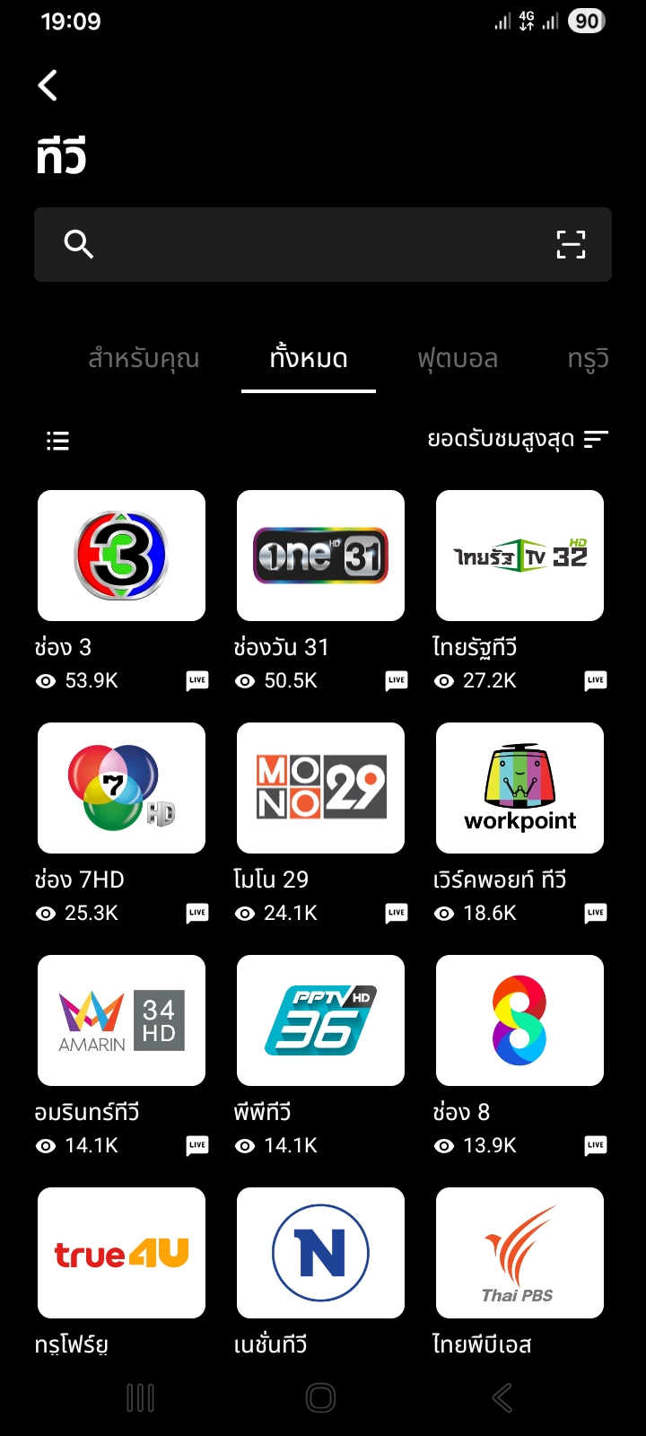 5 อันดับช่องฟรีทีวีบน TrueID TV ประจำวัน 25 กุมภาพันธ์ 2569 เวลา 19:09 น.