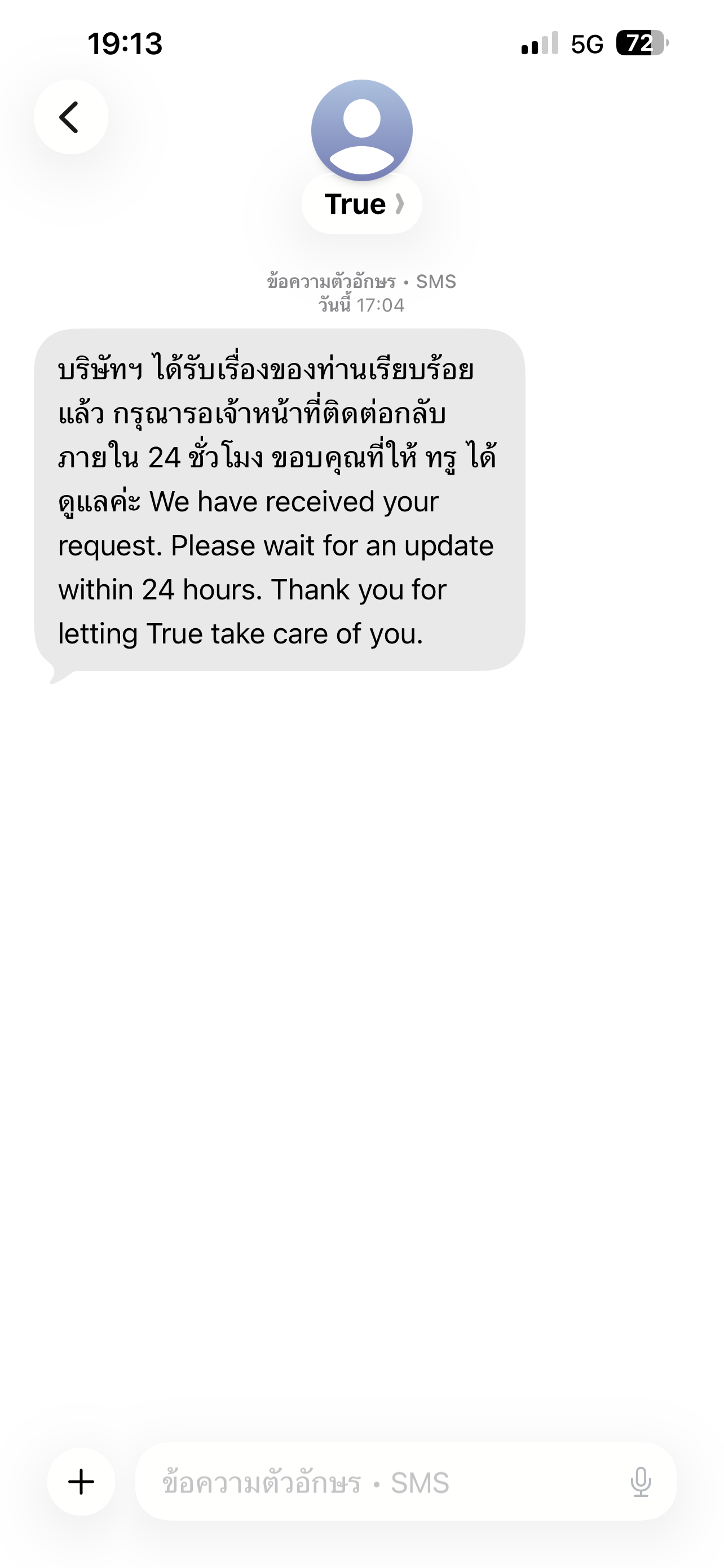 5. ต่อเนื่องจากวันที่ 25/2/2569 หลังจากได้คุยกับคุณสรัญญา คอลเซ็นเตอร์ในแอปทรู มีข้อความส่งตรงมาจากทรูว่า บริษัทฯ ได้รับเรื่องของท่านเรียบร้อยแล้ว กรุณารอเจ้าหน้าที่ติดต่อกลับภายใน 24 ชั่วโมง ขอบคุณที่ให้ ทรู ได้ดูแลค่ะ