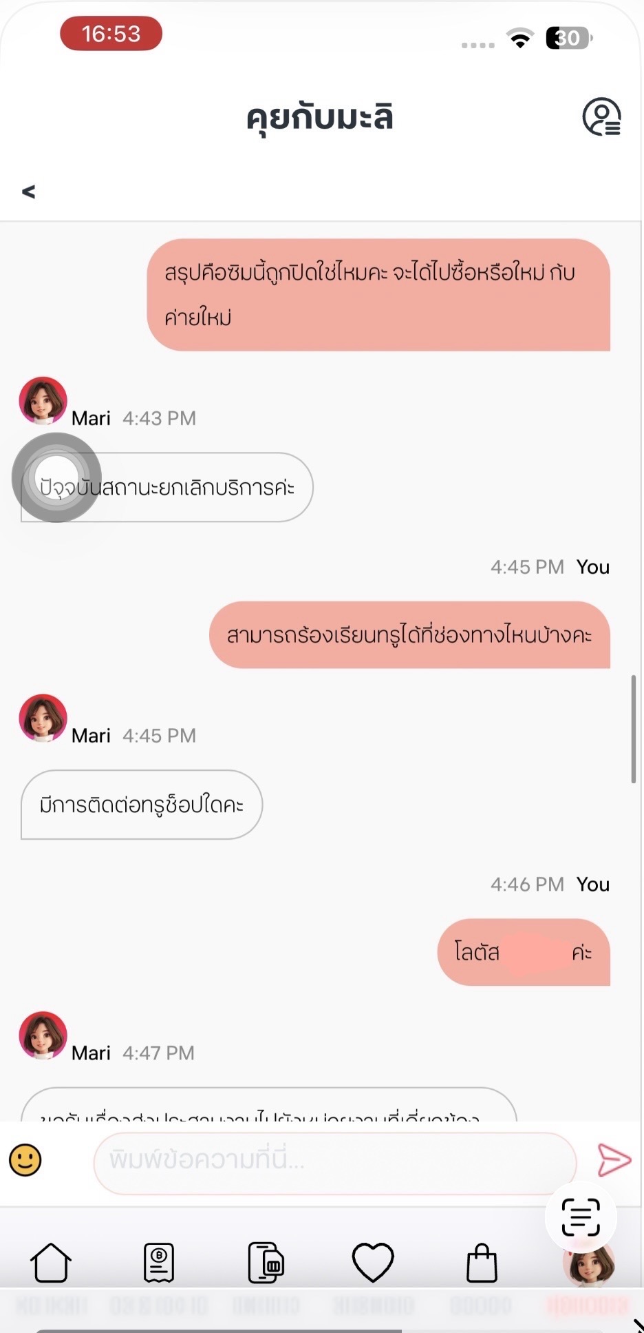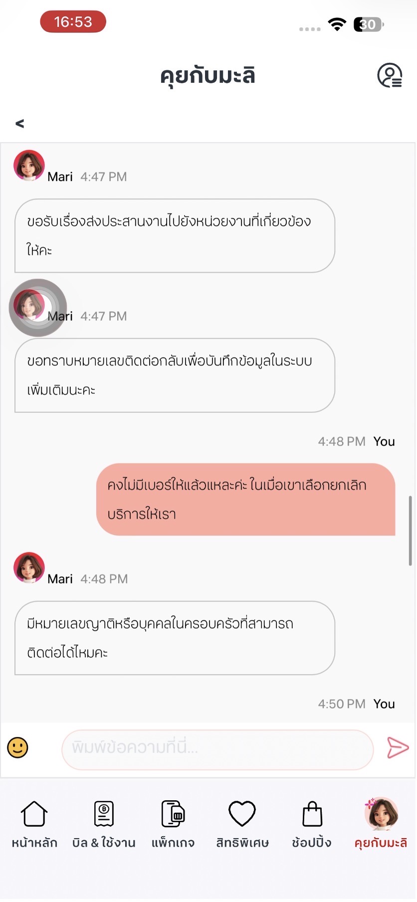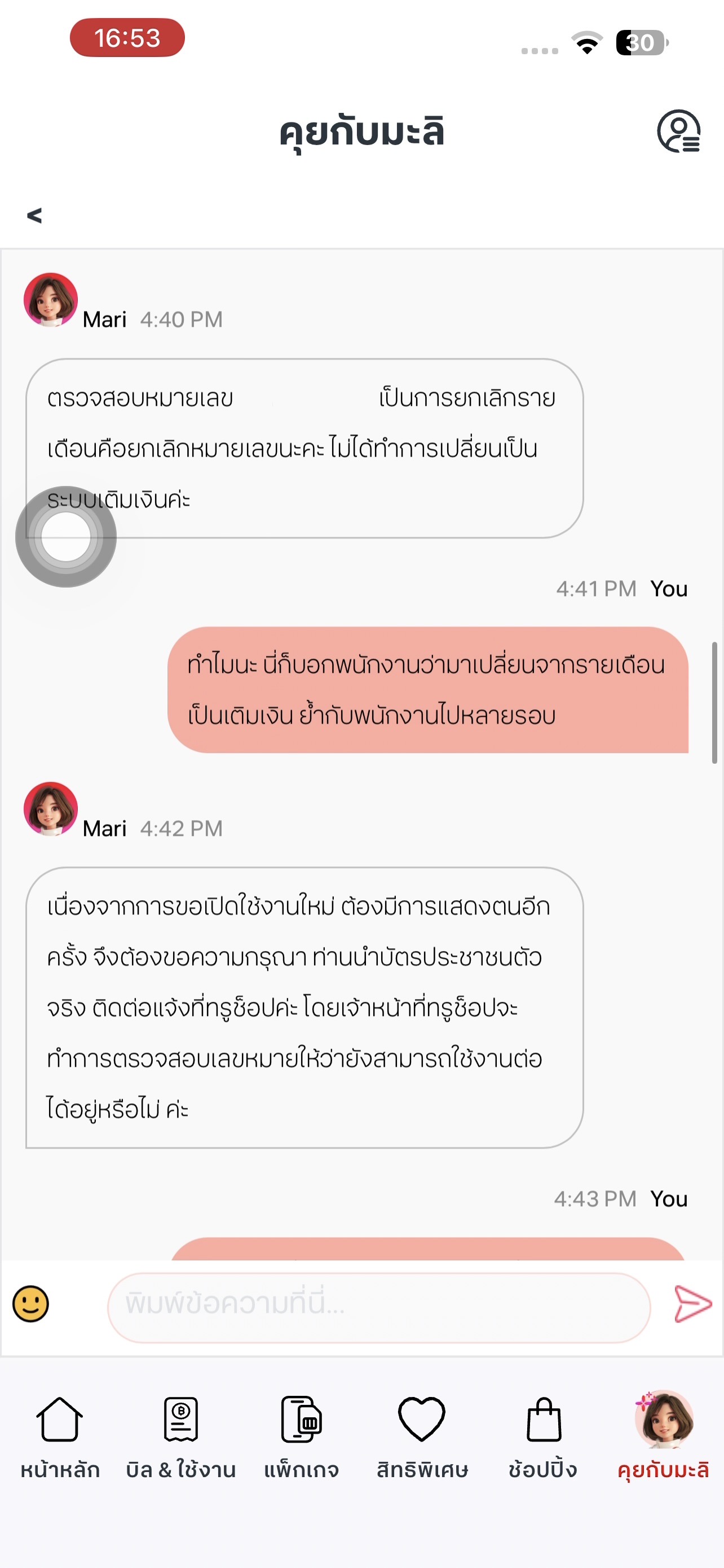"ต้องการเปลี่ยนรายเดือนเป็นเติมเงินค่ะ" พนักงานก็พยายามนำเสนอโปรรายเดือนที่ถูกลง เราก็แจ้งอีกว่า