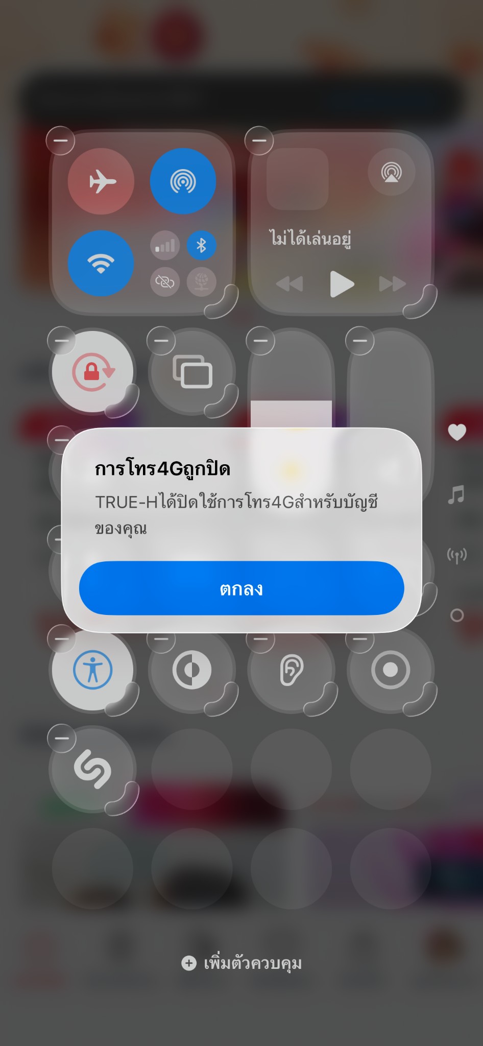 4. ต่อเนื่องจากวันที่ 25/2/2569 ช่วงเย็น ๆ เราดูโทรศัพท์ทำไมไม่มีสัญญาณอินเทอร์เน็ต พอลองกดโทรออกก็ขึ้นข้อความ "การโทร4Gถูกปิด TRUE-H ได้ปิดใช้การโทร 4G สำหรับบัญชีของคุณ" เริ่มเอ๊ะแล้วว่า ทำไมถึงใช้ไม่ได้ เลยพิมพ์ค้นหาในกูเกิลว่ามีใครเคยประสบปัญหานี้ไหม พบว่ามีผู้ประสบภัยหลายคนที่มาแชร์ในพันทิป เราเลยเข้าแอปทรู ไปคุยกับมะลิและขอติดต่อพนักงานดูแลต่อ รอนานหน่อยแต่มีพนักงานเข้ามาตอบจริง
