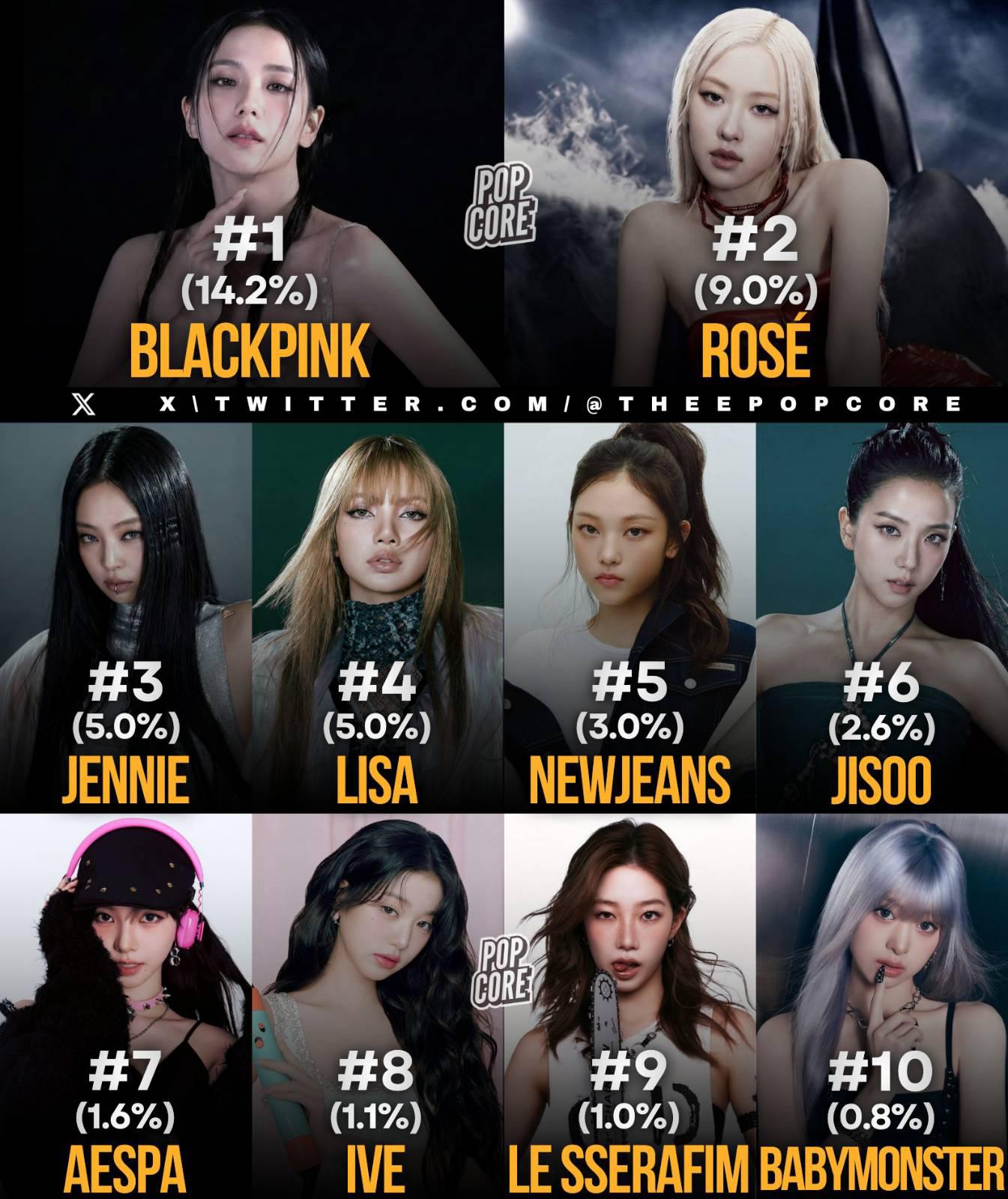อันดับศิลปินหญิง K-pop ที่ถูกกล่าวถึงในสื่อมากที่สุดจากกระแสข่าวและโซเชียลทั่วโลกในปี 2025