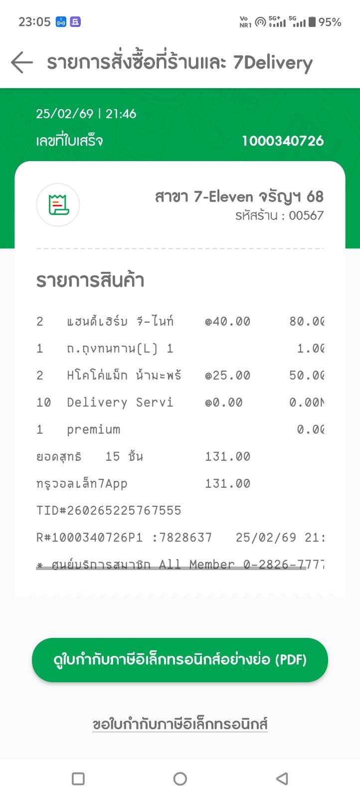 ซื้อสินค้าไปหลายชิ้นผ่าน7-11 เดลิเวลี่เกือบ150บาท ยังหักเงินค่าถุง1บาทอีก สินค้าหมดไม่ว่ายังมาหักค่าถุง1บาทอีก