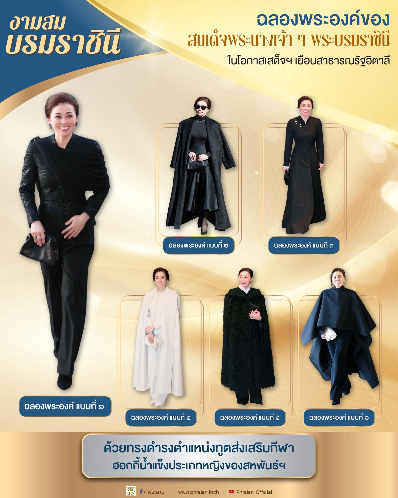 กับ ๖ ลุคฉลองพระองค์ ที่สะท้อนความสง่างาม คลาสสิก และเรียบหรู ไม่ว่าจะเป็นฉลองพระองค์โทนสีดำที่ดูภูมิฐาน ไปจนถึงฉลองพระองค์เคปสีขาวที่สวยสะกดทุกสายตา 🖤🤍