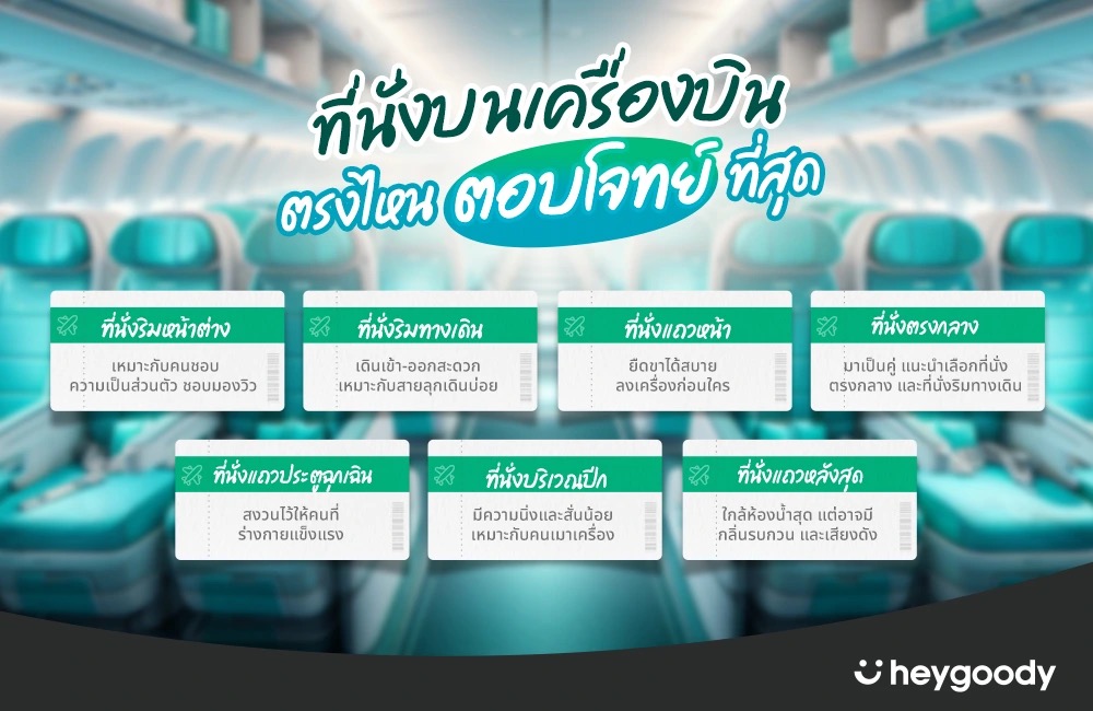 https://www.heygoody.com/th/blogs/lifestyle/best-airplane-seat-tips/#:~:text=ทริคเลือกที่นั่งเครื่องบินให้นั่งสบายที่สุด&text=1.%20เช็คแผนผังที่นั่งก่อนจอง&text=2.%20เลี่ยงที่นั่งติดห้องน้ำและท้ายเครื่อง&text=3.%20เลือกที่นั่งริมหน้าต่างหรือริมทางเดิน&text=4.%20เลี่ยงที่นั่งตรงกลาง&text=5.%20เลือกแถวหน้า%20หรือแถวประตูฉุกเฉิน
