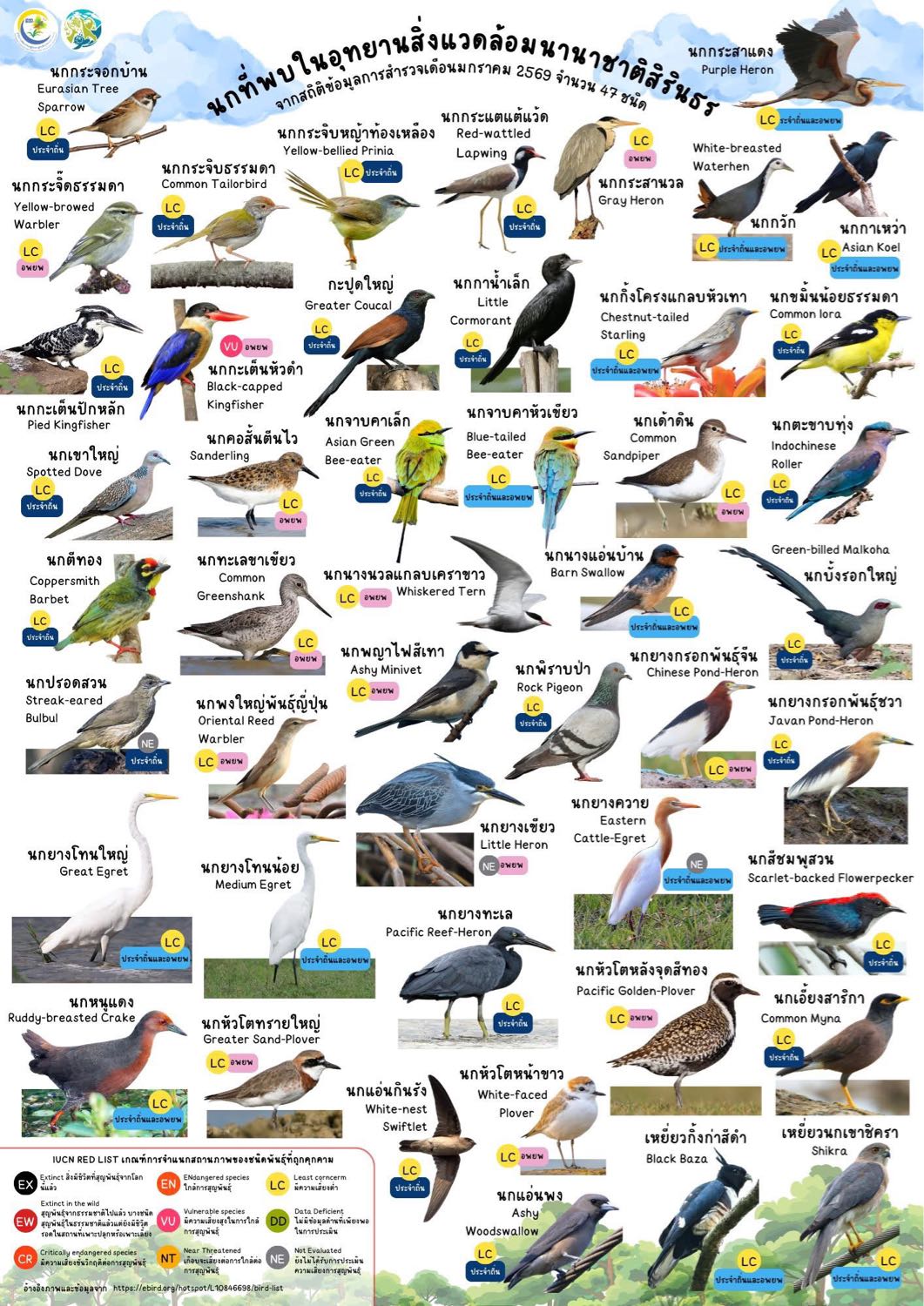 🐦 นกที่พบในอุทยานสิ่งแวดล้อมนานาชาติสิรินธร