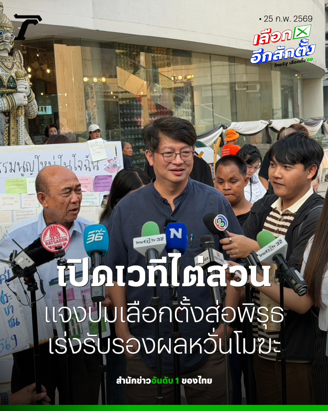 วันที่ 25 กุมภาพันธ์ 2569 ที่บริเวณลานด้านหน้าหอศิลปวัฒนธรรมแห่งกรุงเทพมหานคร (BACC) บรรยากาศเป็นไปอย่างคึกคัก มีประชาชนและนักกิจกรรมทางการเมืองสวมเสื้อเชิงสัญลักษณ์ถือป้ายเรียกร้องความโปร่งใสเข้าร่วมอย่างต่อเนื่อง โดยมีไฮไลต์สำคัญคือเวทีเสวนา “ไต่สวนสาธารณะ” นำโดย นายสมบัติ บุญงามอนงค์ หรือ บก.ลายจุด และ นายยิ่งชีพ อัชฌานนท์ จาก iLaw ท่ามกลางการแสดงดนตรีจากวงสามัญชนเพื่อสะท้อนเจตนารมณ์รัฐธรรมนูญฉบับประชาชน