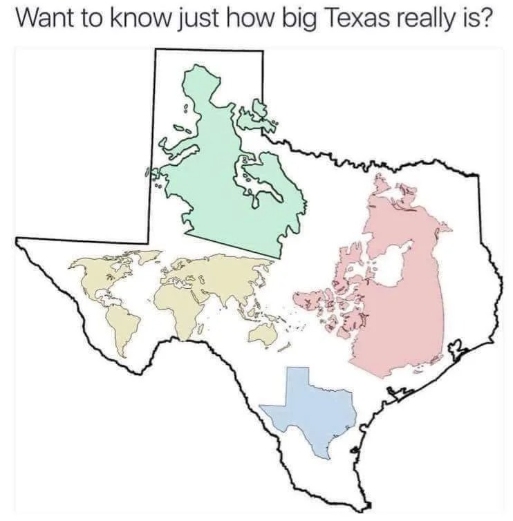 ความกว้าง กว้างขนาดจนฝรั่งยังทำเป็นมีม ล้อถึงขนาดความใหญ่ของรัฐเท็กซัส