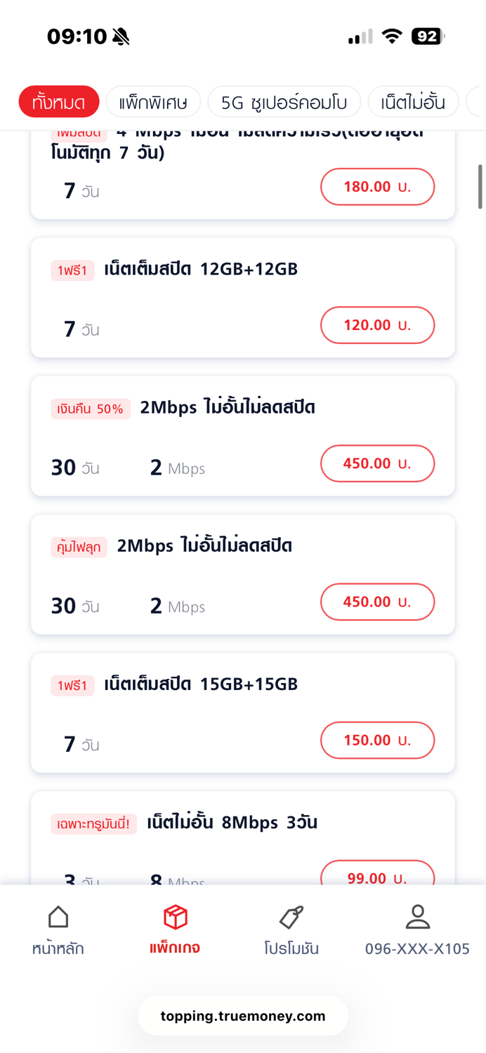 เคยใช้เน็ตทรู 30Mb ราคา300บาท แต่ตอนนี้เหมือนจะสมัครใช้งานไม่ได้แล้ว ราคาเน็ต