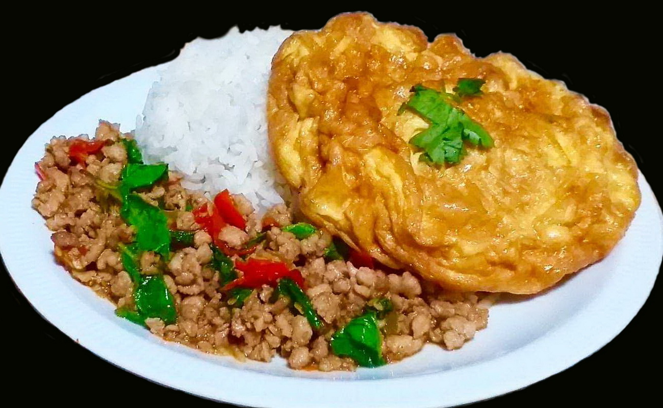 @ ข้าวกระเพราหมูสับ-ไข่เจียว