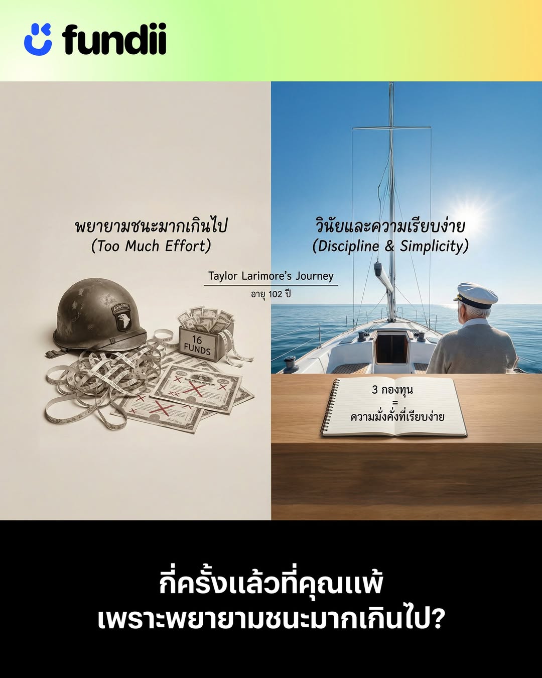 แต่ในตลาดหุ้น เขาทำตรงข้าม เขาถือกองทุน 16 กอง พยายามซื้อๆ ขายๆ ซื้อไม่ดูค่าธรรมเนีย เขายอมรับเองว่า มัน “ย่ำแย่และไร้ทิศทาง” ปี 1986 เขาเจอแนวคิดของ John C. Bogle เขาเปลี่ยนจากหน้ามือเป็นหลังมือ จาก 16 กองทุน เขาถือแค่ 3 กองทุนเท่านั้น 👍🏻