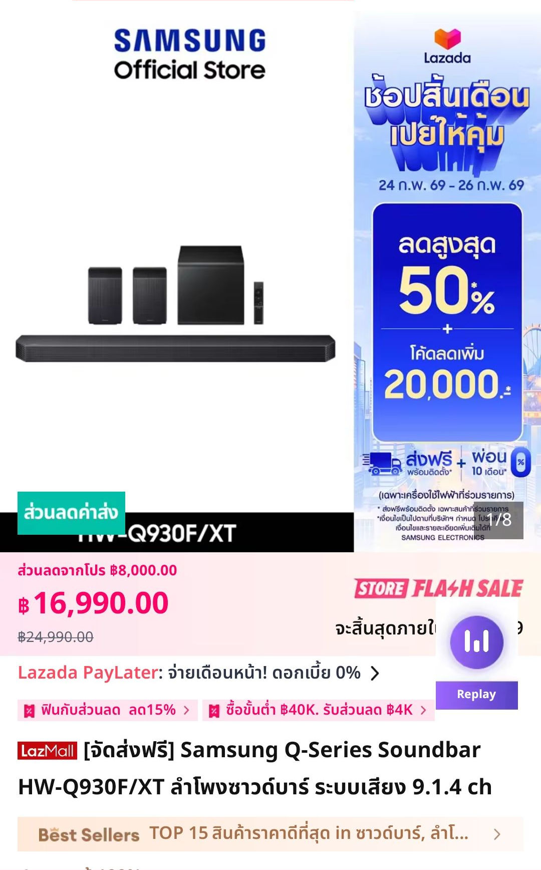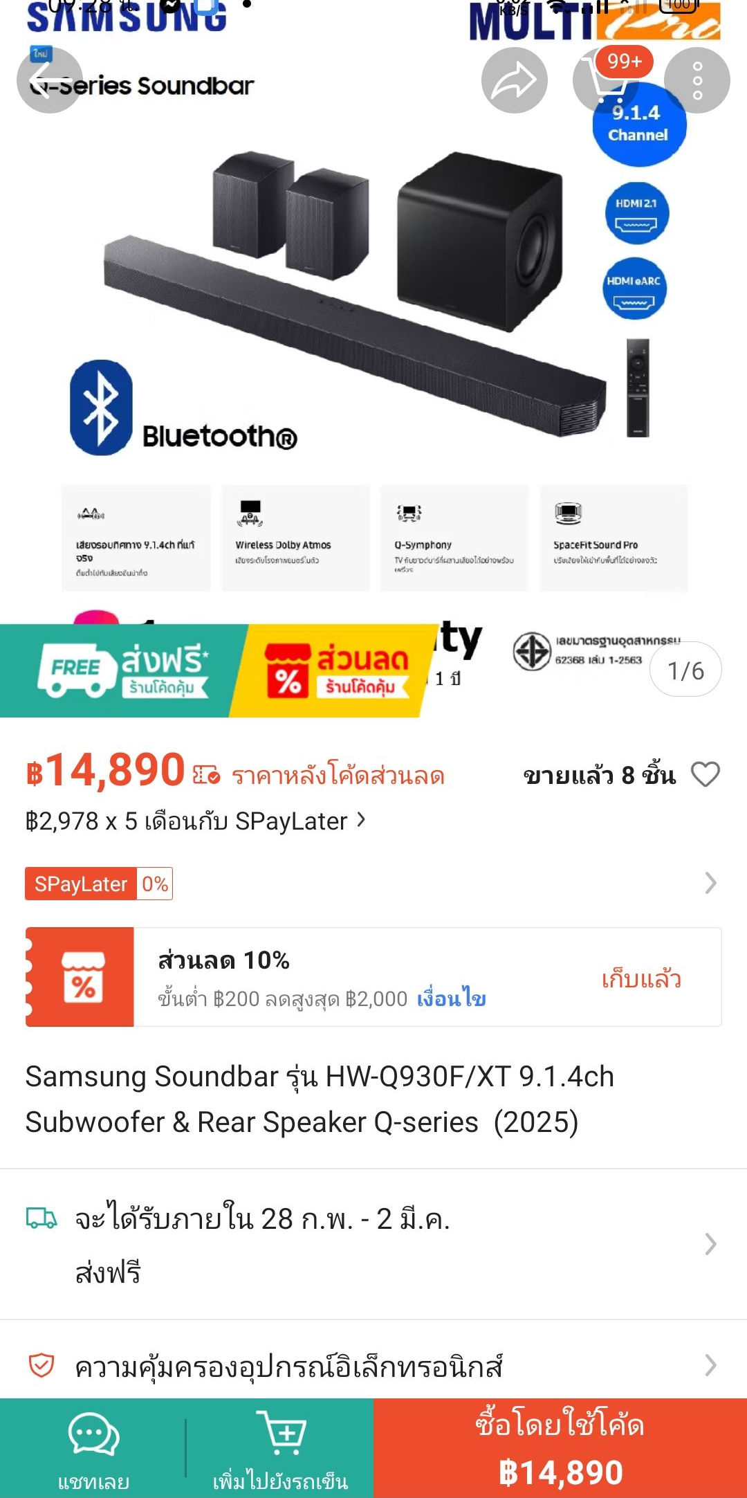 🔰ราคา Soundbar ช่วง PAYDAY ช็อปเลย! ช้อปทุกวัน ยันสิ้นเดือน 24-26 ก.พ.69 Samsung Soundbar รุ่น HW-Q930F 9.1.4ch
