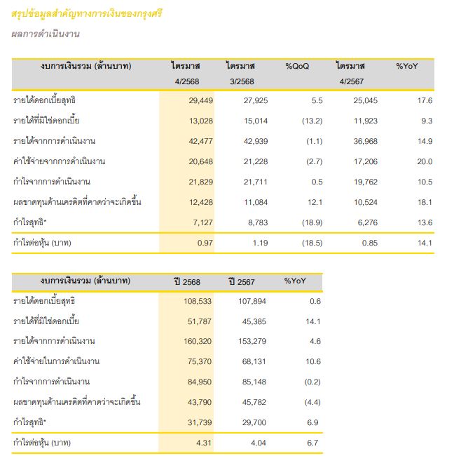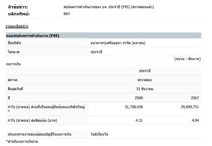 BAY : ธนาคารกรุงศรีอยุธยา จำกัด (มหาชน) สรุปผลการดำเนินงานของ บจ. ประจำปี 2568