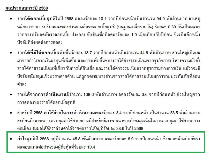 ปี 2568 / ธุรกิจธนาคาร กำไรสุทธิ 45.8 พันล้านบาท