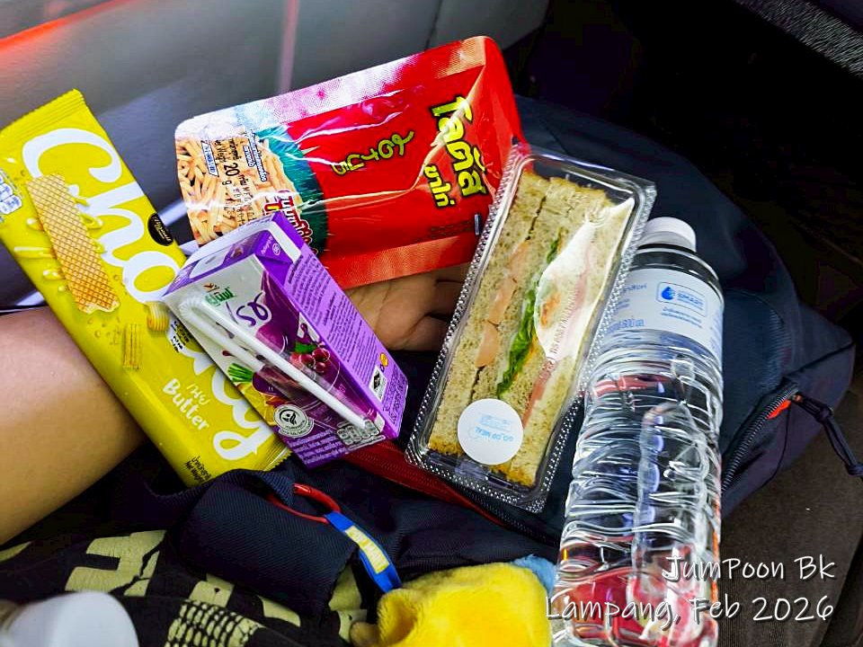การเดินทางเริ่มต้น: นครชัยแอร์ ขึ้นรถที่ปั๊มบางจากรังสิต เวลา 21.35 น. นอนยาวถึงลำปาง ถึงสถานีขนส่งลำปาง 05.30 น. ขอบอกว่าของกินที่แจกบนรถนี่ถ้ากินหมดอิ่มจนจุก ไม่มีการจอดแวะพักกินข้าวกลางทางให้เสียเวลาเสียสุขภาพการนอน ก่อนลงมีนมถั่วเหลือง 1 กล่องให้อีก