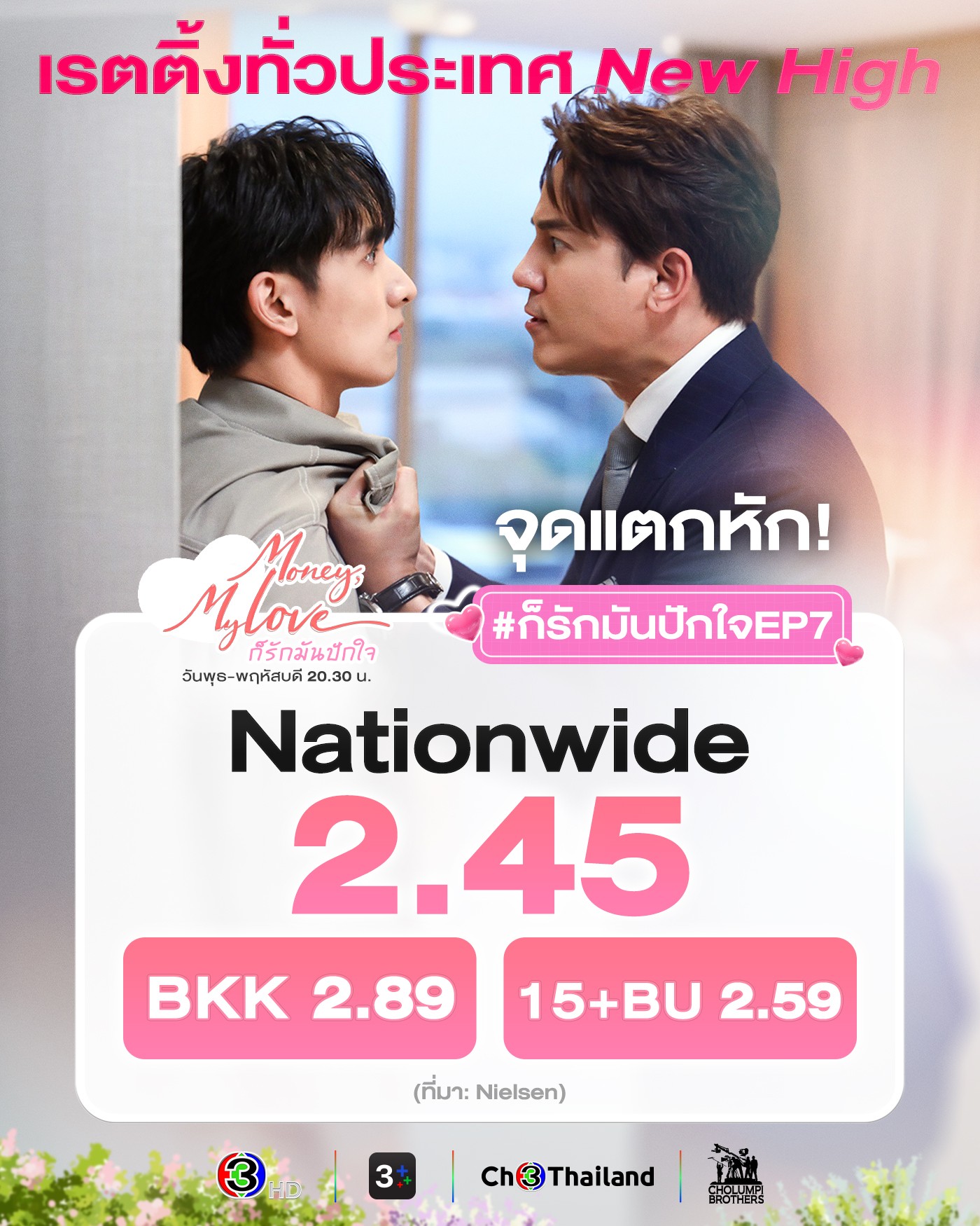 📌 เรตติ้งละคร "ก็รักมันปักใจ" EP.7 เรตติ้งกรุงเทพฯ 2.89 / เรตติ้งทั่วประเทศ 2.45 ❣️ ทำเรตติ้ง New High !!! 🎉