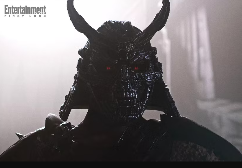 ถ้าดูภาพใกล้ๆ คุณจะเห็นเลยว่าตาแดง มุมปากที่ดูเยาะเย้ย และโครงสร้างหมวกที่ดูหนักหน่วง มันให้ความรู้สึกน่าเกรงขามแบบที่เกมยุค 90s ทำได้แค่ในจินตนาการ แต่หนังทำออกมาได้แบบที่สัมผัสได้จริงๆ