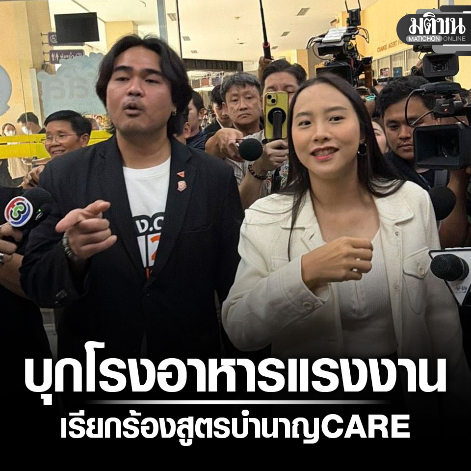รักชนก-สหัสวัต หม่ำขาหมูไร้มันส่วนต่าง พร้อมคุยผู้ประกันตนเรียกร้องสูตรบำนาญ CARE
