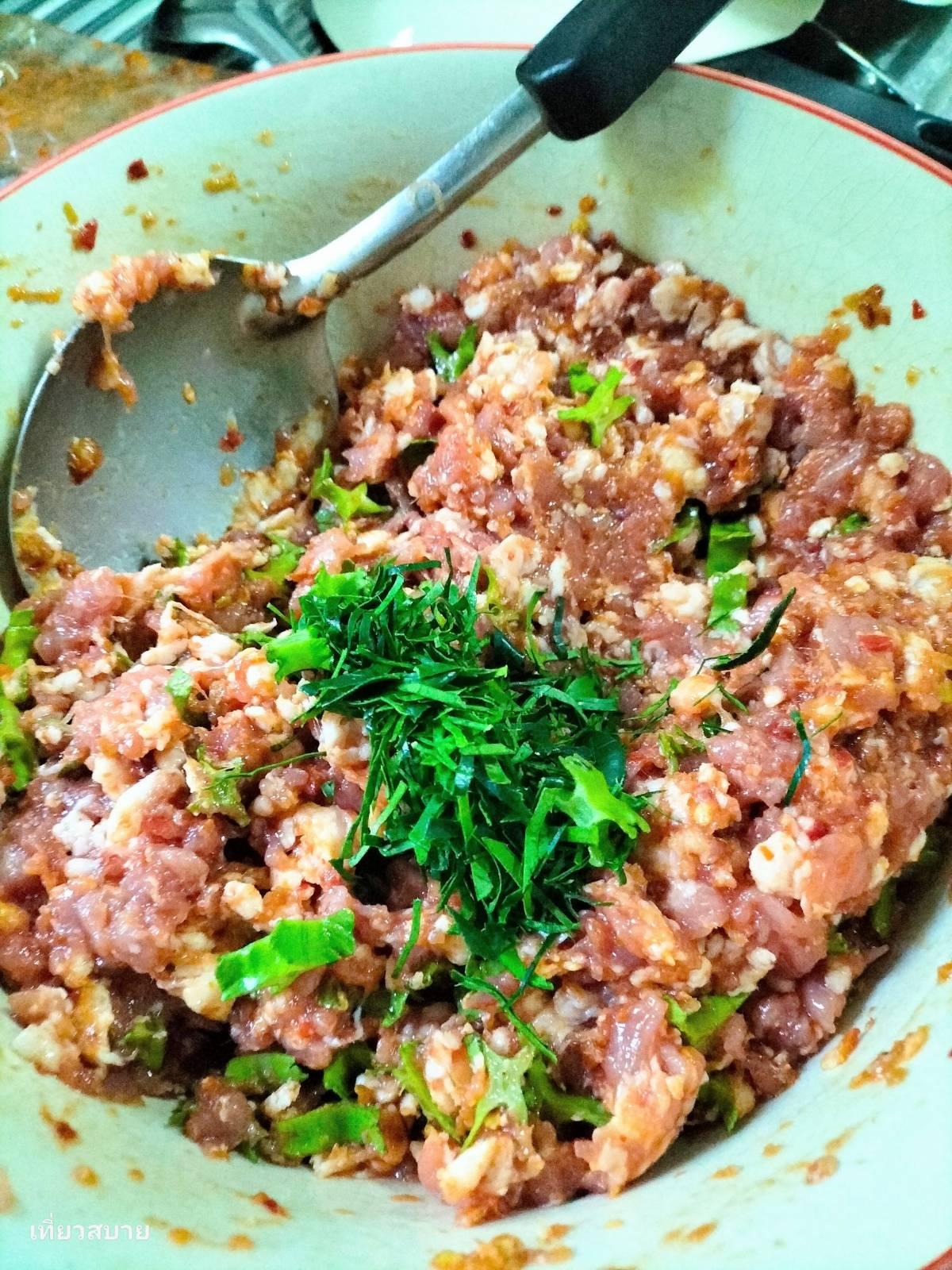 1. เนื้อหมูสับ : 500 กรัม (เลือกแบบติดมันเล็กน้อยเพื่อให้เนื้อทอดมันนุ่ม ไม่แข็งกระด้าง)
