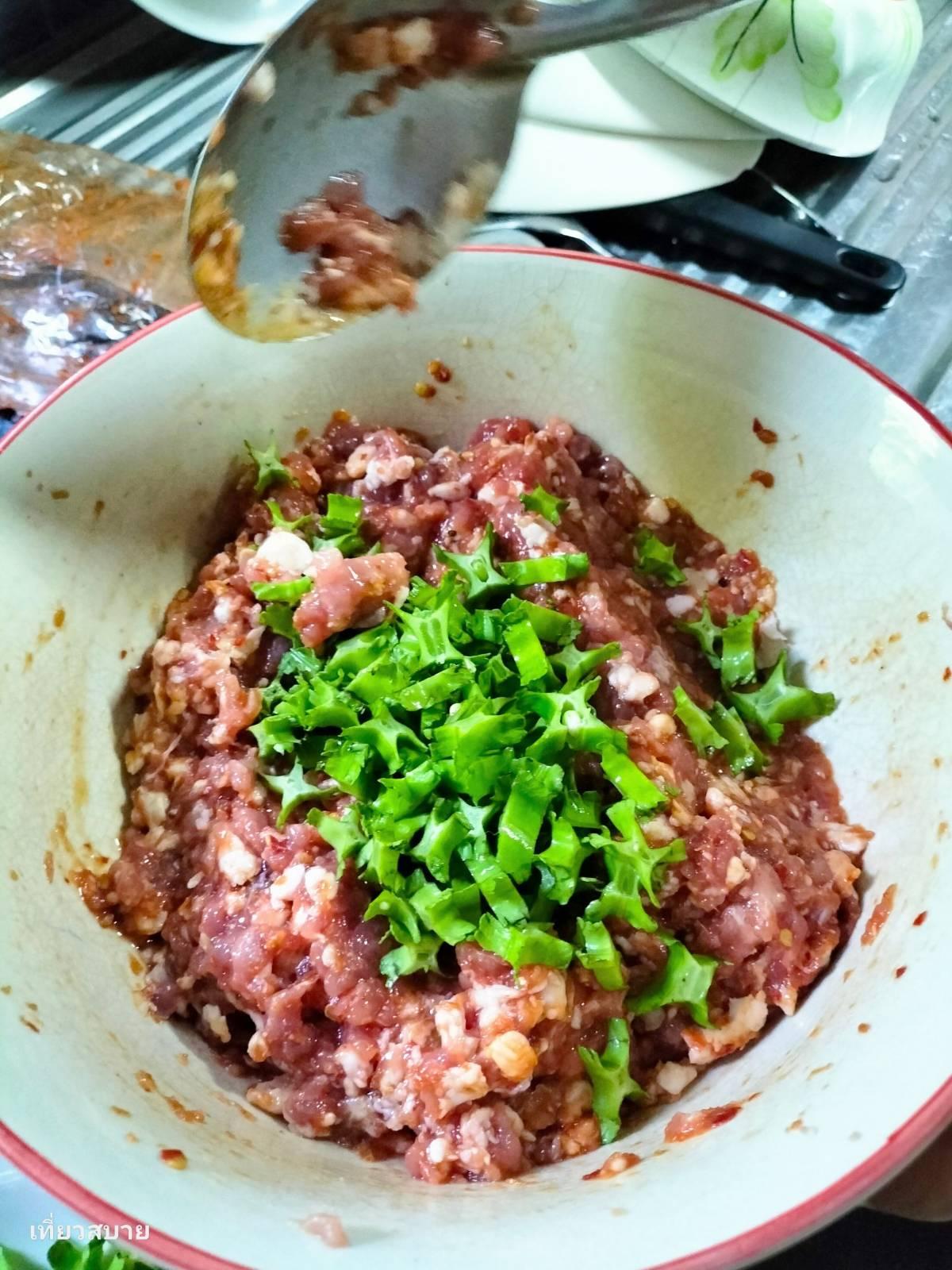 4. ใบมะกรูด: 5-6 ใบ (ซอยละเอียด)
