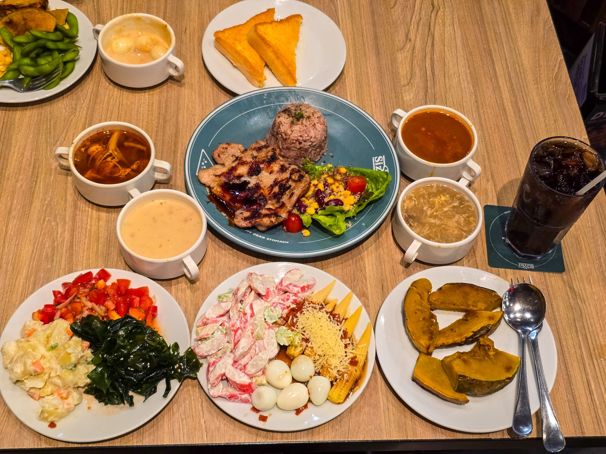 Note: ส่วนตัวรอบนี้ผมประทับใจสลัดบาร์มาก เพราะ "ข้าวโพดอ่อน" กลับมาแล้ว! และที่อยากป้ายยาแรงๆ คือ "ฟักทองย่างน้ำมันงาญี่ปุ่น" ชิ้นโตๆ กับ "ซอสทูน่า" ที่เนื้อทูน่ามาเป็นชิ้นเน้นๆ ตักทานคู่กับสลัดผักคือที่สุดครับ
