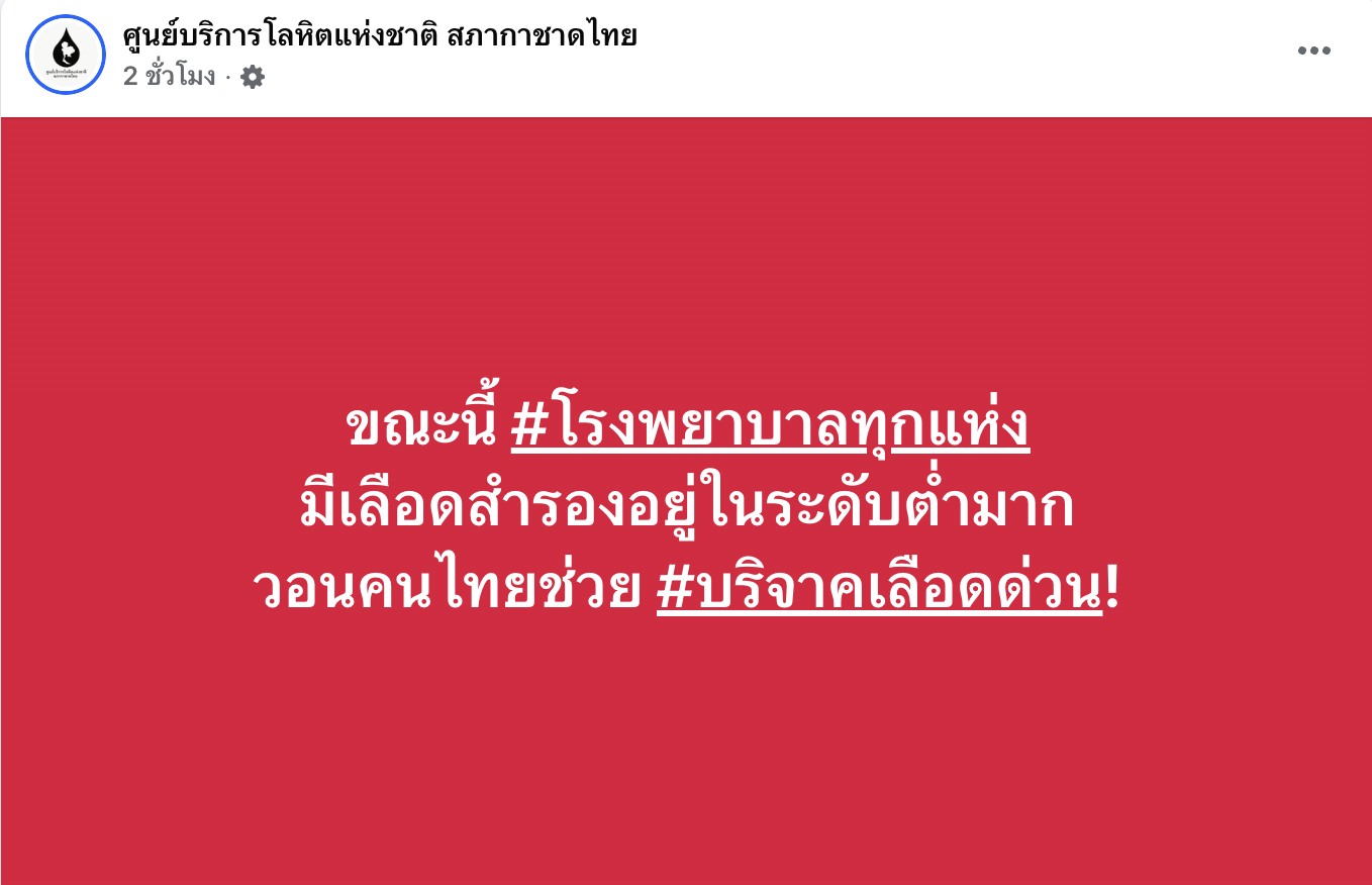 ด่วน❗ ขอพลังคนไทยช่วยกัน 🙏#บริจาคเลือด🙏 เนื่องจากขณะนี้ 🏥โรงพยาบาลทุกแห่งทั่วประเทศ 🩸มีเลือดสำรองอยู่ในระดับต่ำมาก