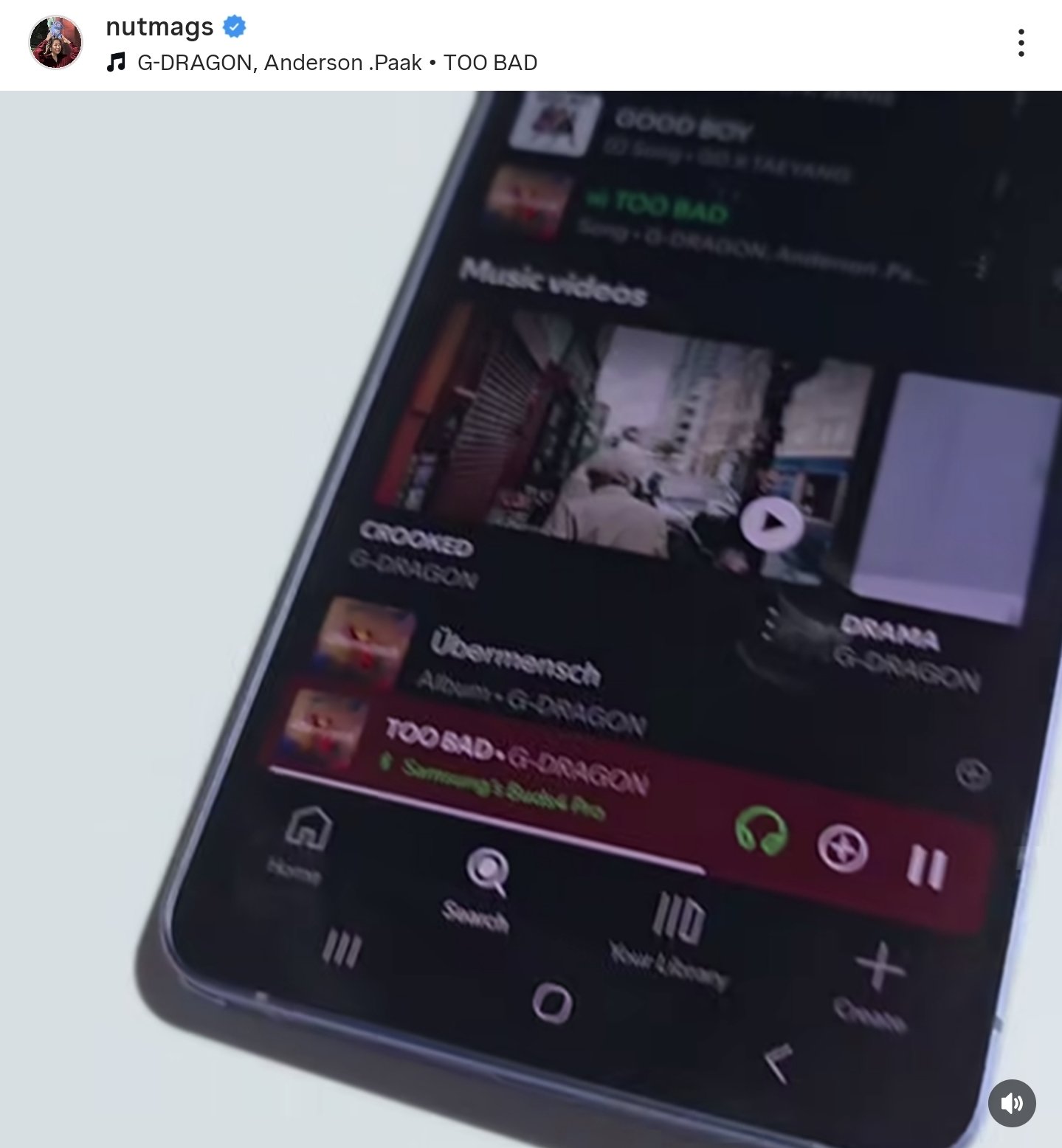 ใน Instagram ส่วนตัว เป็นภาพมือถือของเธอกำลังเล่นเพลง TOO BAD ผลงานเพลงของ G-DRAGON ร่วมกับ Anderson .Paak ตามนั้น