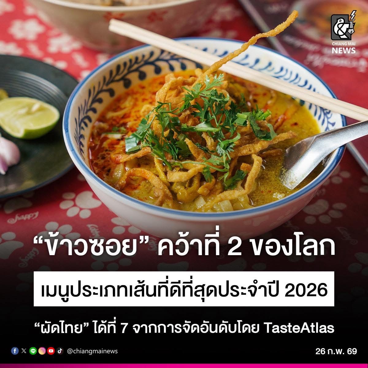 "ข้าวซอย" คว้าอันดับ 2 ของโลก เมนูเส้นที่อร่อยที่สุด ส่วนผัดไทยได้ที่ 7