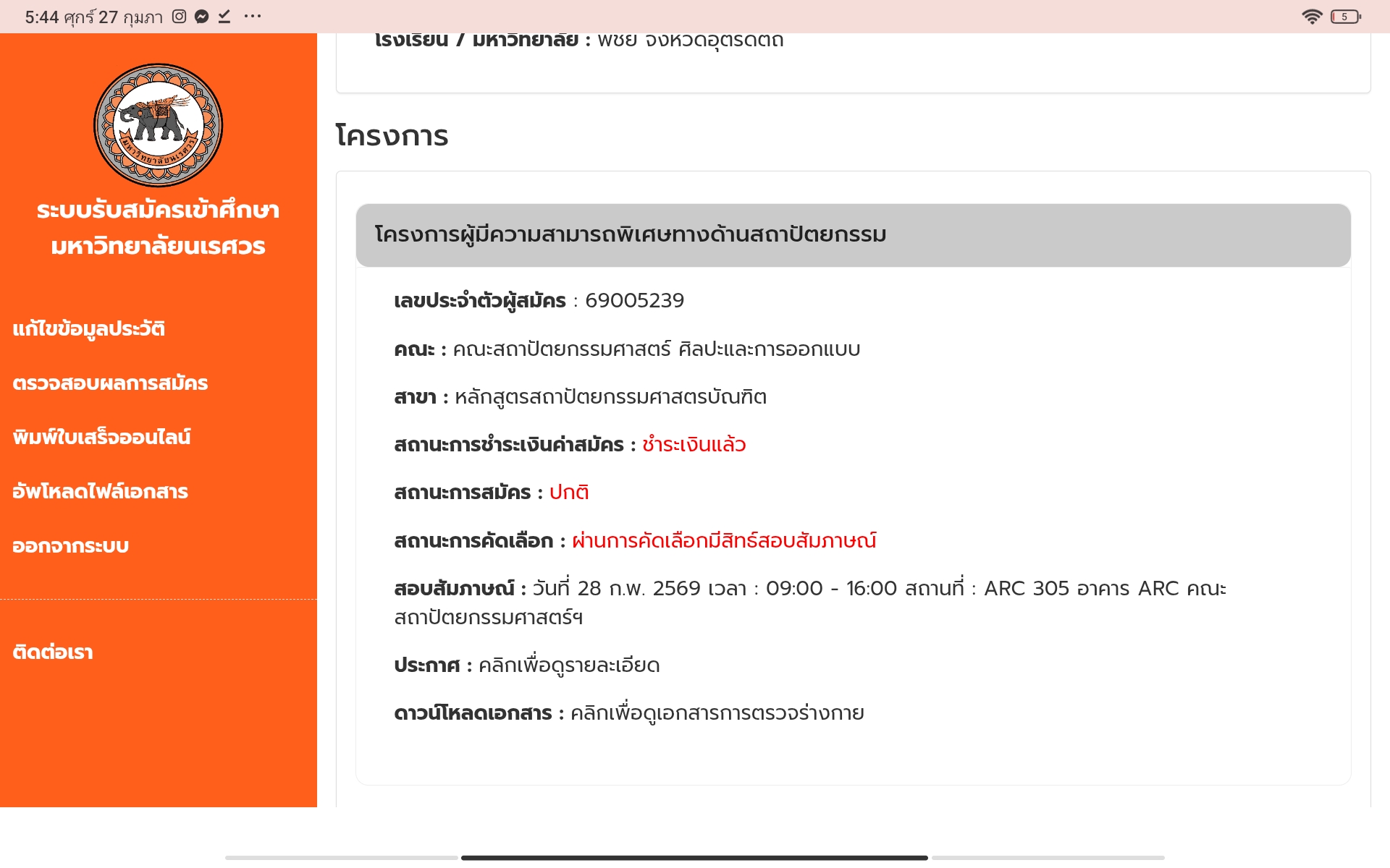 สอบสัมภาษณ์ คณะวิทยา สาขาIT มอนเรศวร