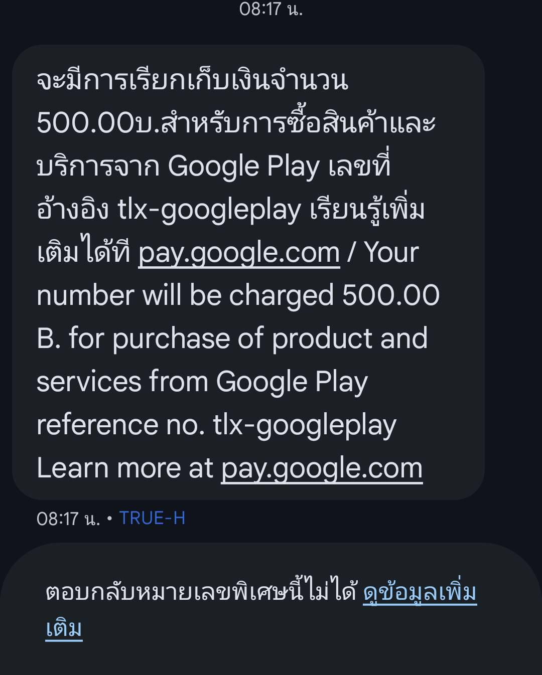 ยอด Google Play 500 บาท เรียกเก็บในบิลรายเดือน True ทั้งที่ไม่ได้ซื้อ และไม่มีประวัติในบัญชี Google ช่วยตรวจสอบด้วยครับ