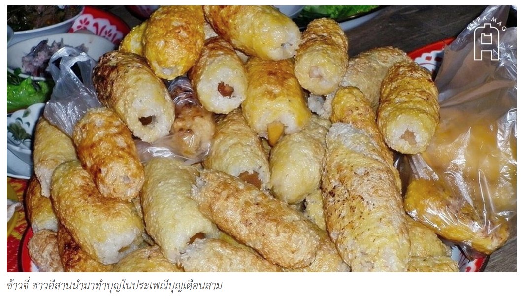 ข้าวจี่ ชาวอีสานนำมาทำบุญในประเพณีบุญเดือนสาม