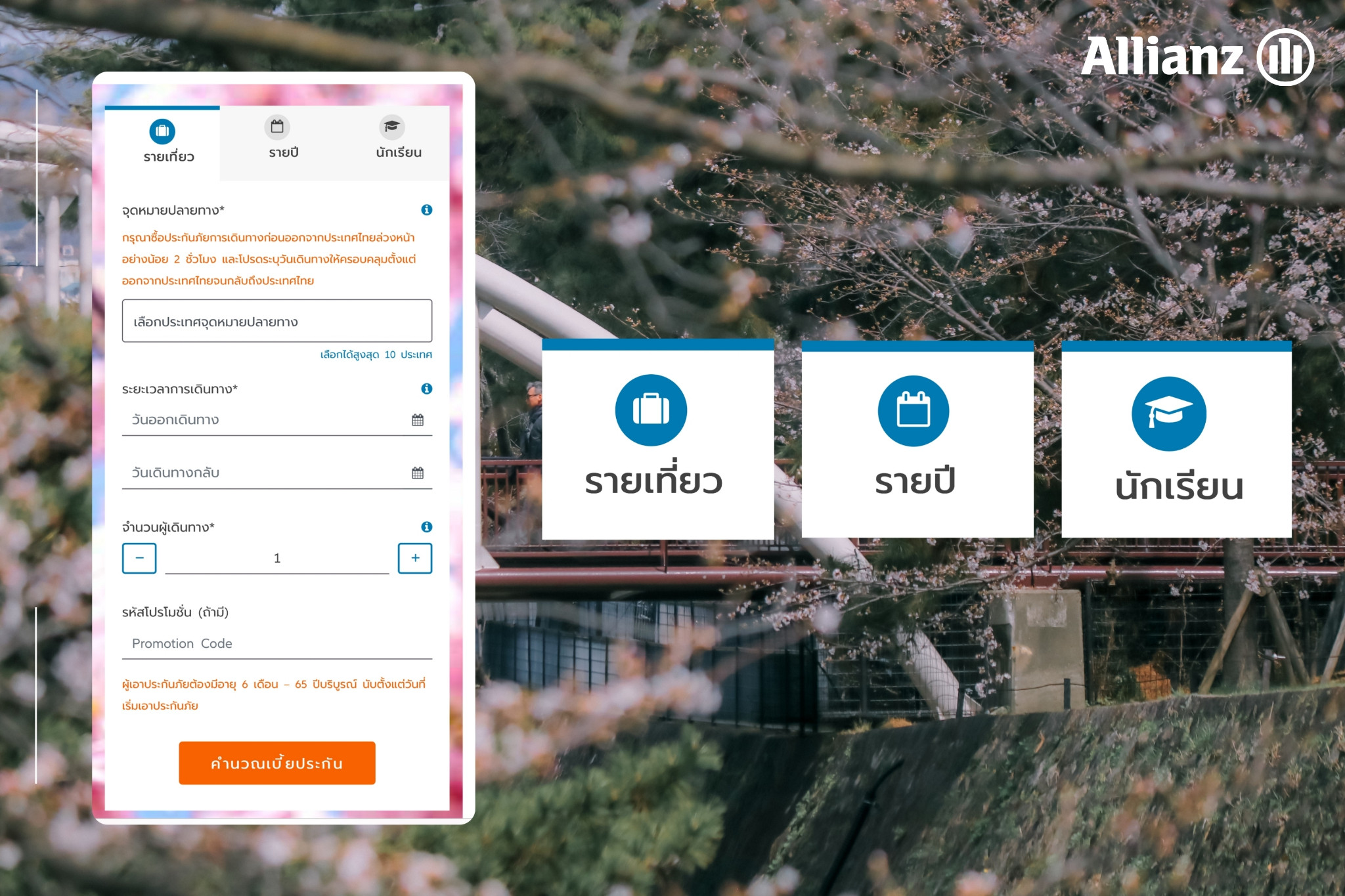 ผ่านหน้าเว็บไซต์ https://allianz-assistance.co.th/travel/